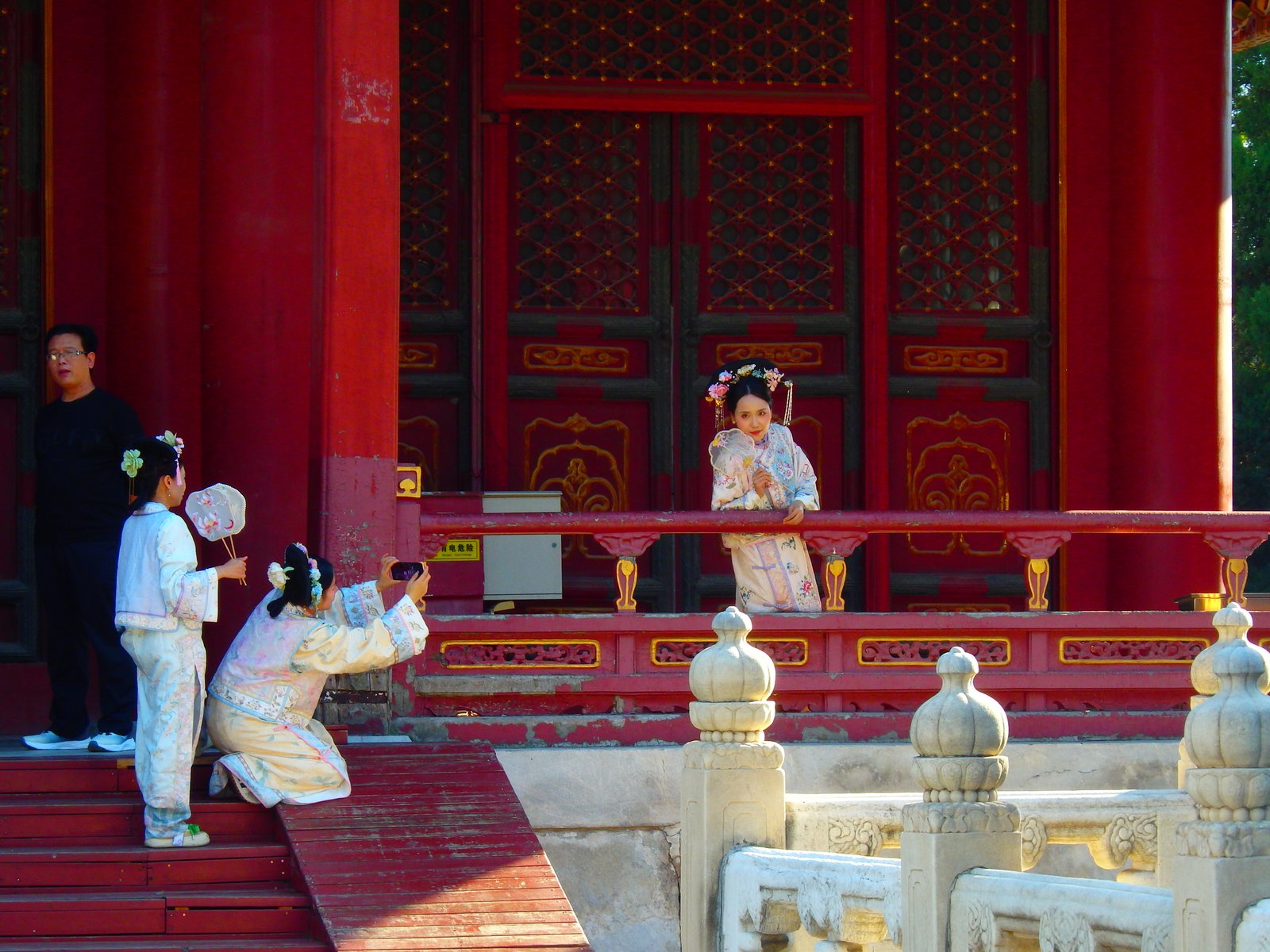 Czym się objawiał Złoty Tydzień z naszej perspektywy – zamknięte stacje metra, zamknięta część ulic i ograniczenia w ruchu pieszym na niektórych przejściach. Czytając to można sobie wyobrazić morze czarnowłosych głów, nieprzebrane tłumy podobnych dla Europejczyka ludzi, ale nie było wcale tak źle. Być może przez to, że nie zdążyliśmy się dobrze przestawić z czasu europejskiego i nasze pobudki jeszcze nie bywają przed 9, zaś wygrzebanie z domu odbywa się przed 12, to ominęliśmy te większe tłumy. Co można było jeszcze zauważyć? Pełno ludzi przebranych w tradycyjne stroje ludowe: