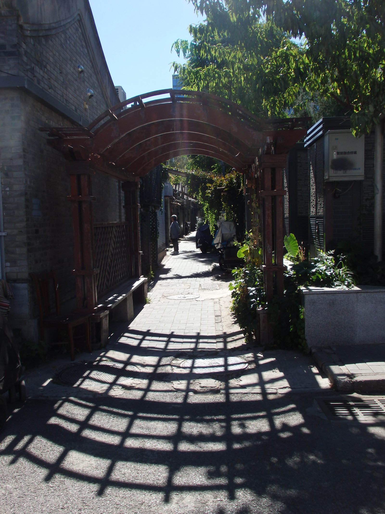 Teraz trochę doczytaliśmy, więc możemy sprecyzować, że mieszkamy w siheyuan (四合院 – czworobok), zaś sam Hutong (胡同), to wąska uliczka, wzdłuż której zbudowane są z szarej cegły wspomniane czworoboki. Są też szersze uliczki, które nazywa się xiang (巷弄), ale otoczone są ciągle tym samym zespołem budynków.