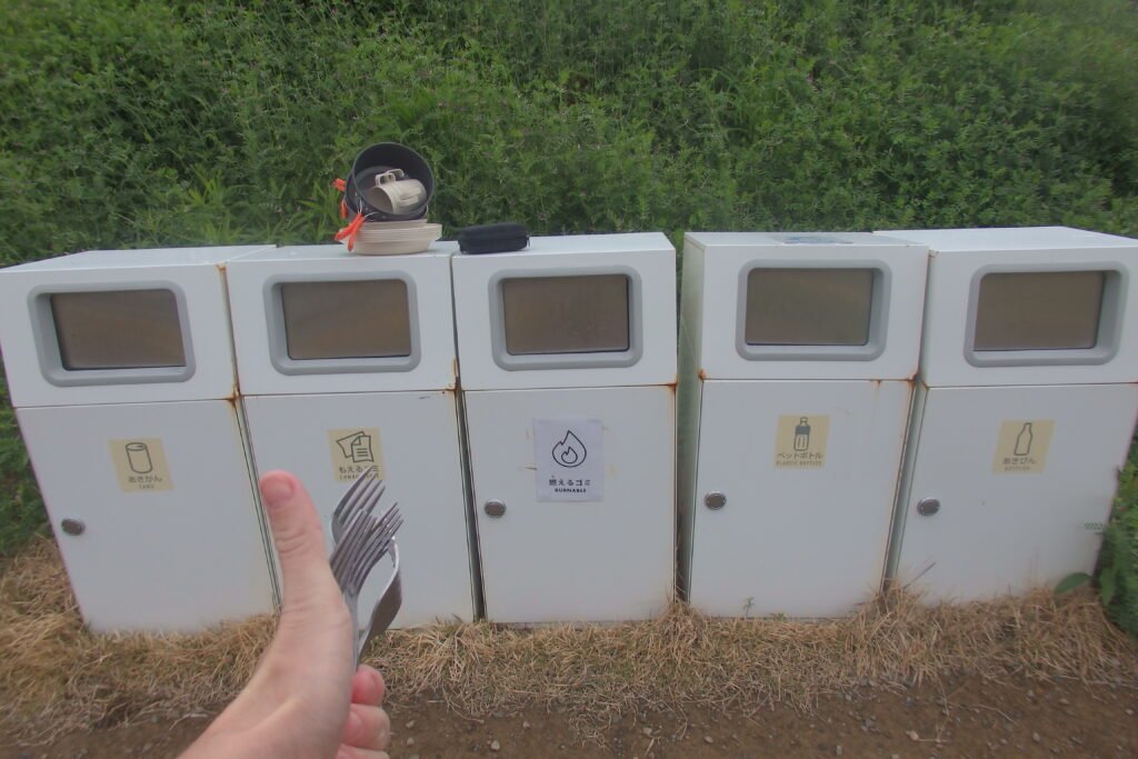 Jednym z aspektów o których w ogóle się nie myśli przed przylotem (a które później stały się bardzo problematyczne) jest kwestia śmieci. W Japonii NIE MA koszy na śmieci w miejscach publicznych. Ani w parkach, ani wzdłuż deptaków – nie ma i już. Ogólna zasada jest – bierz swoje śmieci ze sobą i utylizuj je we własnym zakresie.