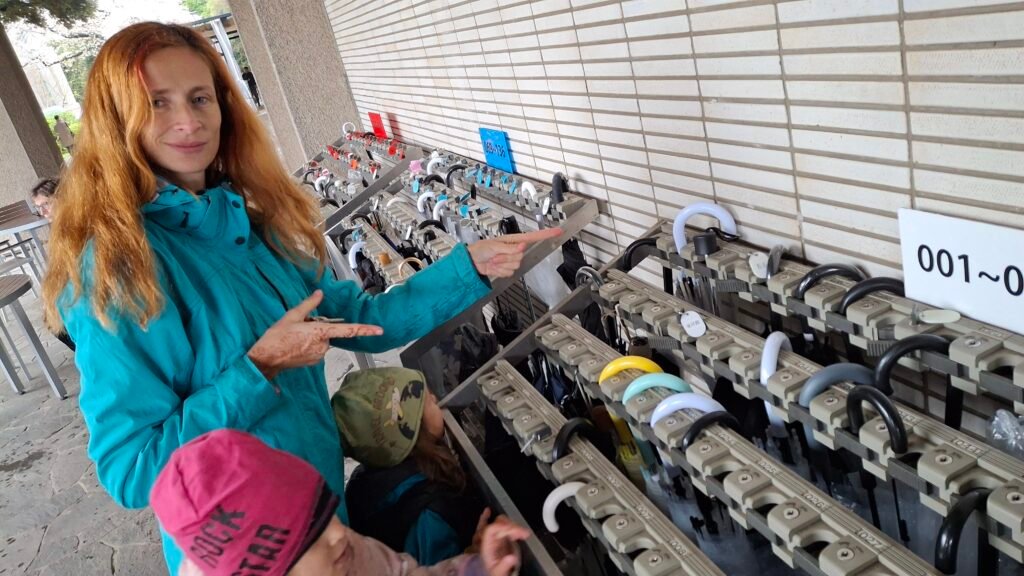 Na lotnisku przywitała nas ogromna kolejka do kontroli paszportowej. I nie – nie było osobnej linii dla rodzin z dziećmi (co było bardzo zaskakujące), więc musieliśmy utrzymać w ryzach zmęczoną czekaniem czwórkę dzieci. Odrobinę dodaje otuchy fakt, że nad głowami przyjezdnych znajdują się liczniki które odmierzają przybliżony czas oczekiwania (dla nas wówczas około 85 minut). Żeby oddać Japończykom sprawiedliwość to w momencie zbliżenia się do kontroli paszportowej na odległość 10 metrów (po przeczekaniu z 30. rzędów kolejki) to wyciągneli nas z tłumu i dali priorytet.
