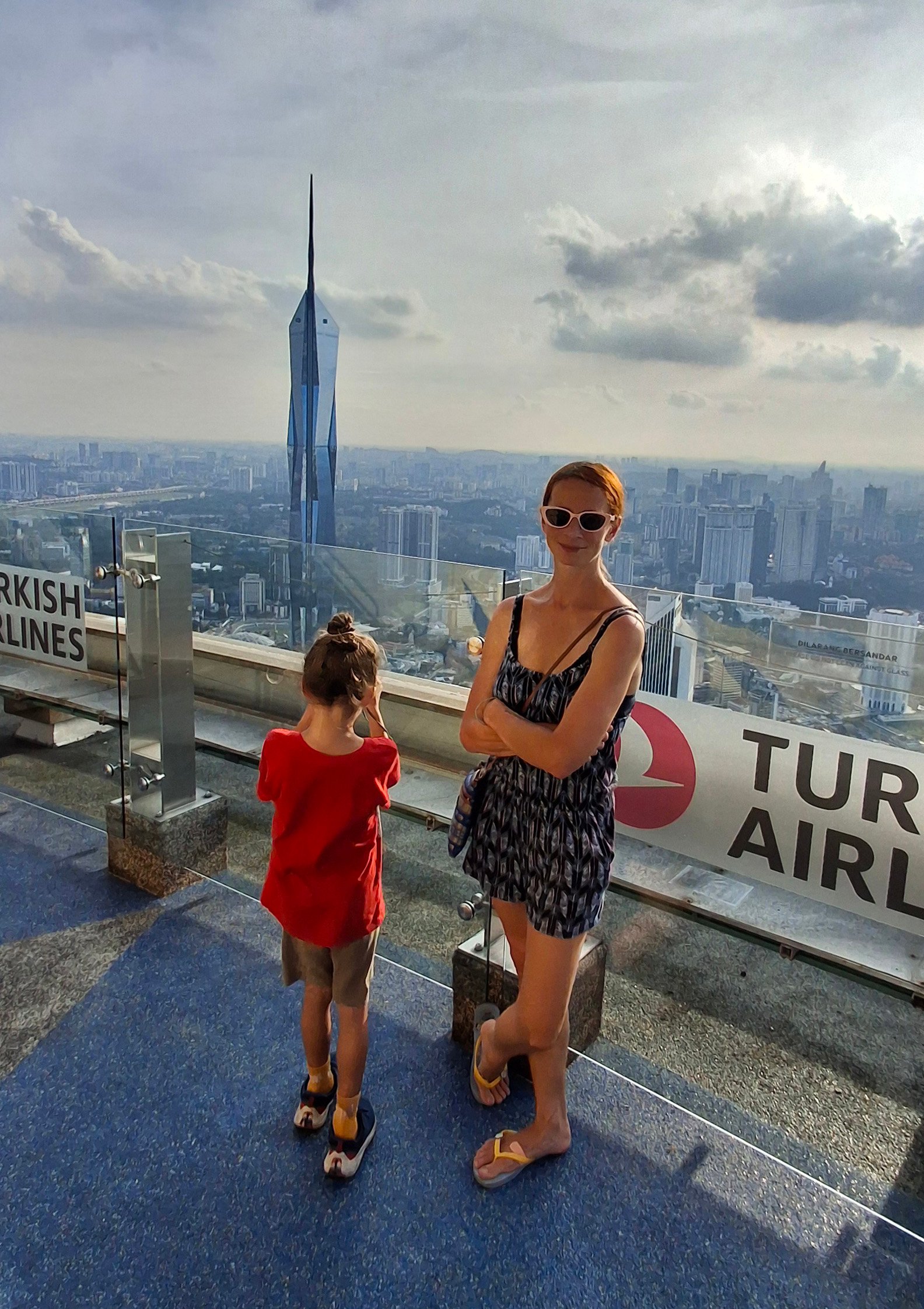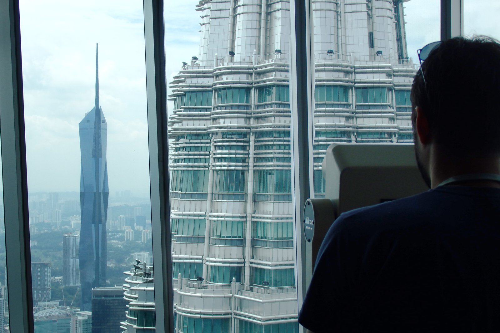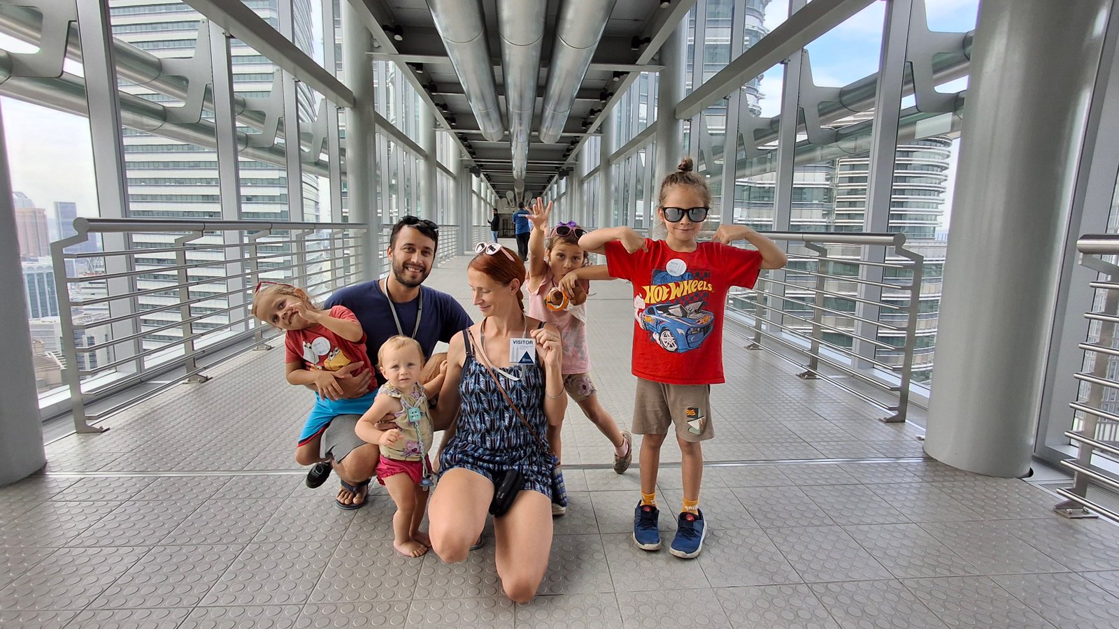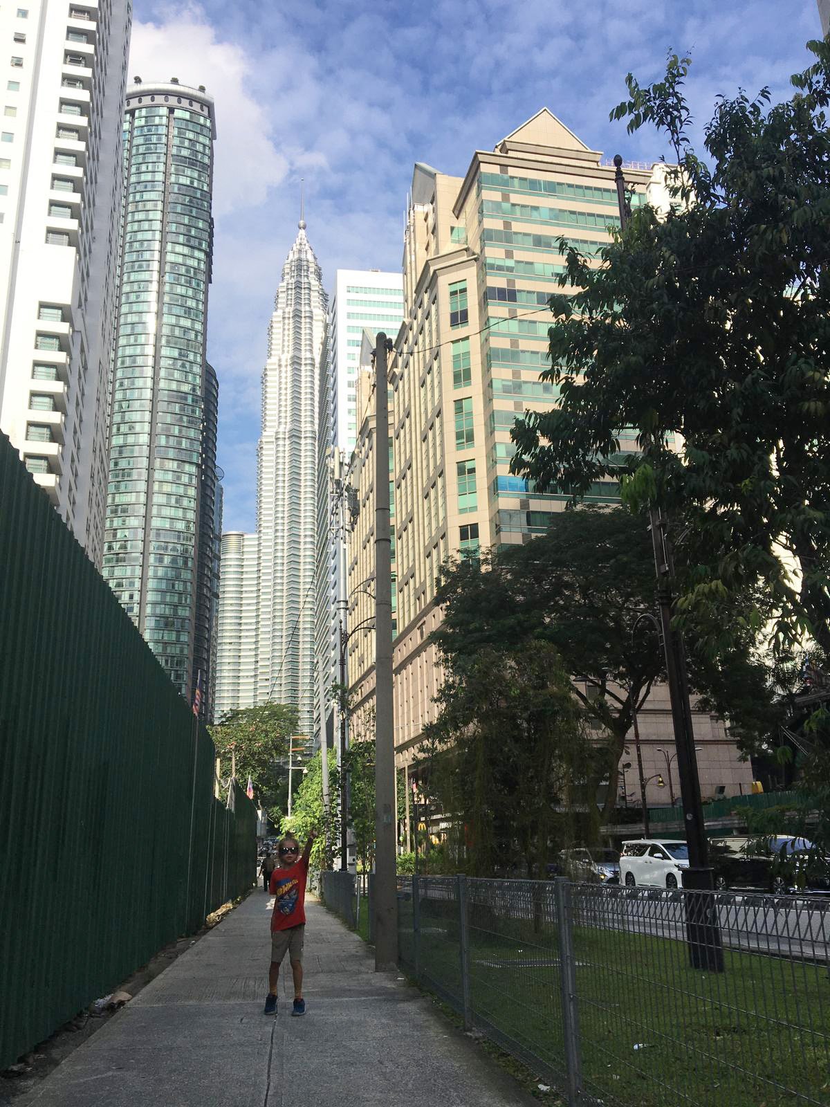 Wycieczka była podzielona na dwie części ograniczone wąskim limitem czasowym. Pierwszym przystankiem był wspomniany wcześniej pomost na 41. piętrze. Tam spędziliśmy kwadrans, gdzie można było sobie podziwiać panoramę jak i same wieże Petronas z bliska. Był nawet samo pstrykający aparat, a także dedykowana pani fotografka, która upodobała sobie naszą familię (no ciekawe dlaczego).