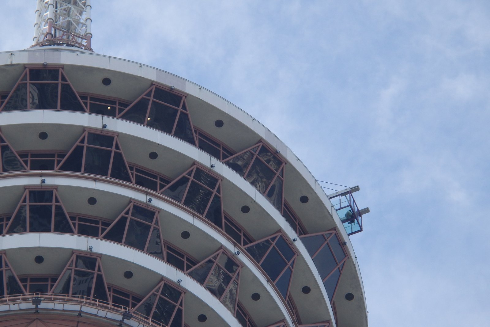 Podczas zakupu biletów trzeba także wybrać jakie atrakcje chce się wykupić. I tak, jest więcej niż jedna atrakcja (lama!) na wieży, a mianowicie: Observation Deck, Sky Walk i Sky Box. To pierwsze to platforma dookoła najwyższego piętra, 360 stopni widoczności na całe KL; drugie to możliwość przejścia z zabezpieczeniem wspinaczkowym po maluteńkiej ścieżce dookoła wieży (nie nasza bajka), a ostatni na tej liście Sky Box był celem naszej wizyty.