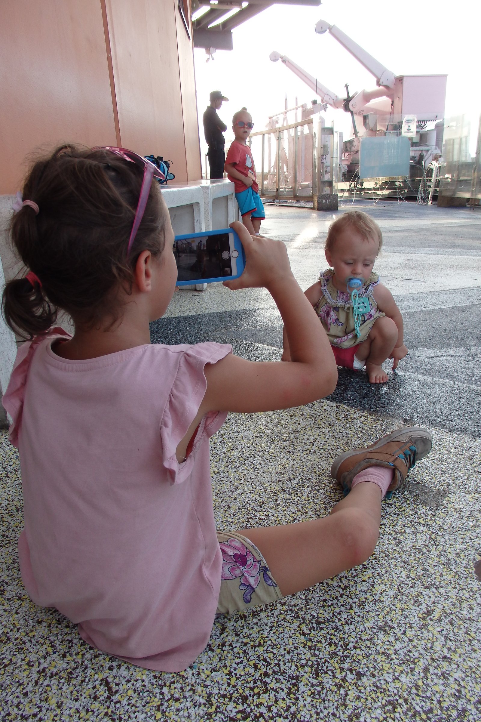 Oprócz tego Jezioro Symfonii (Lake Symphony) – 10tys m2 kompleks wodny z fontannami, które wieczorami dają pokaz muzyczno-wodno-świetlny (ominęliśmy mimo wcześniejszych planów dotarcia). My widzieliśmy je w ciągu dnia i z przyjemnością zanurzyliśmy stopy – lub całego siebie w przypadku młodocianych. Swoja drogą spotkaliśmy tam całą wycieczkę szkolną z ewidentnie muzułmańskiej szkoły, ponieważ zarówno dziewczynki jak i chłopcy – sztuk z 50 – rzucili się ochładzać nie pozbywszy się wcześniej ani jednej warstwy ubraniowej (no dobra, chłopcy ściągnęli buty i skarpetki, dziewczynki tylko buty ale One to były w pełni zabudowane ubraniowo). A obok biega Aurora, Makary i Baltazar w majtkach – podręcznikowy obrazek różnic kulturowych.