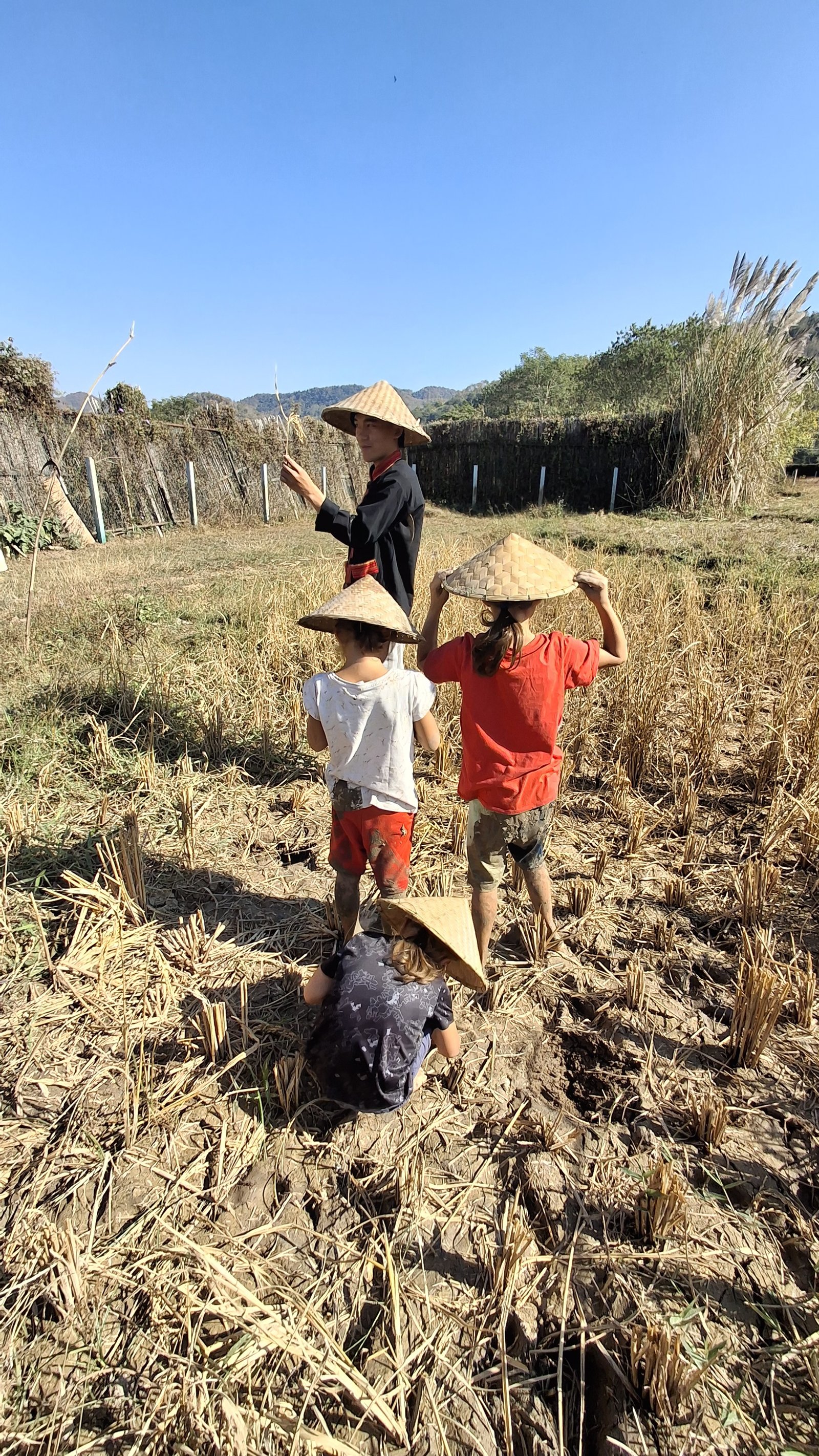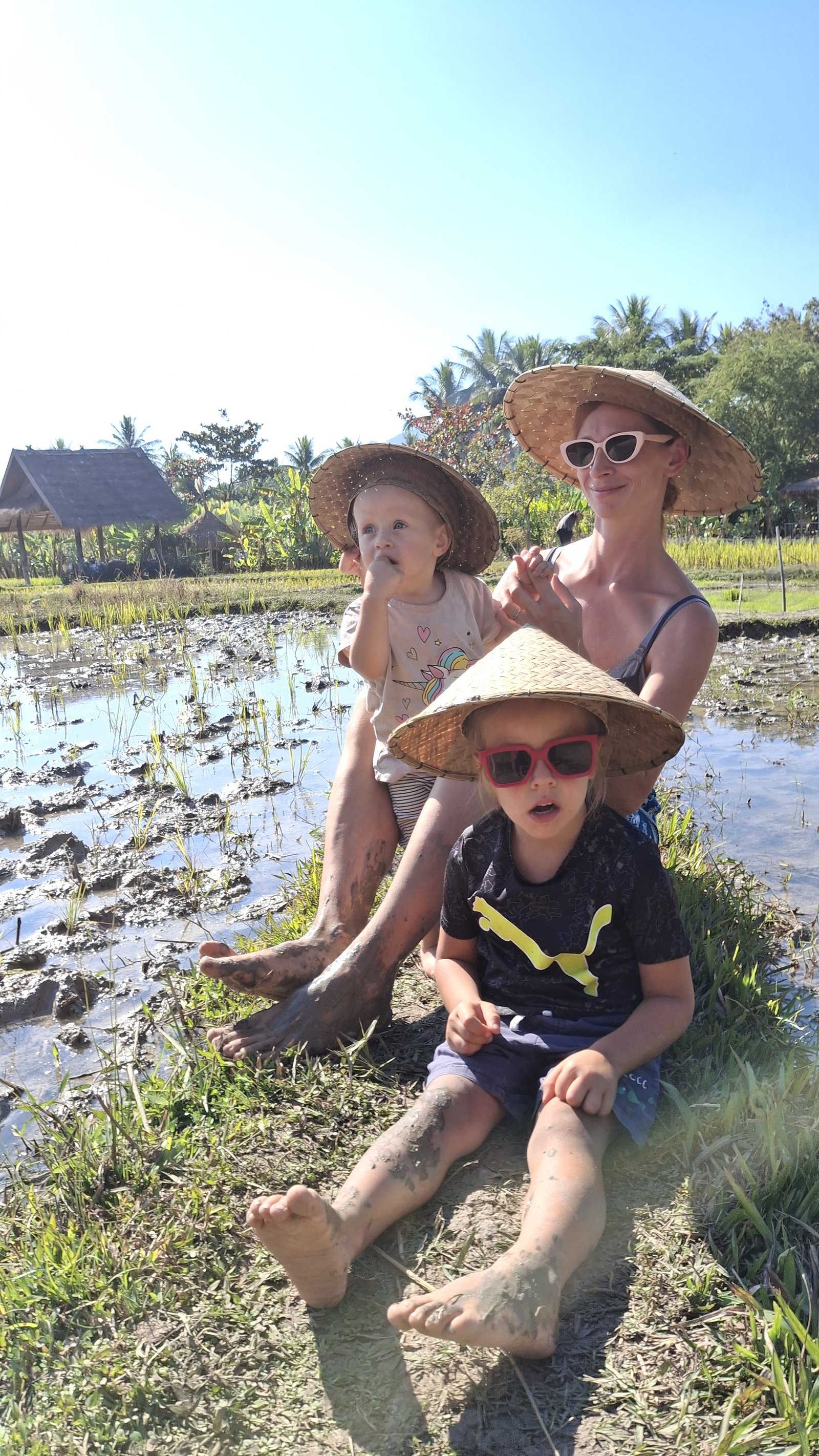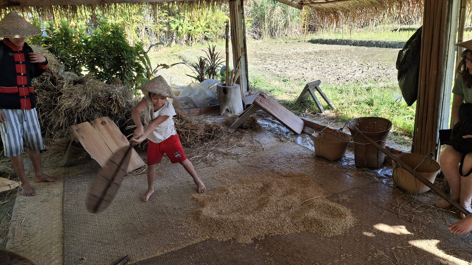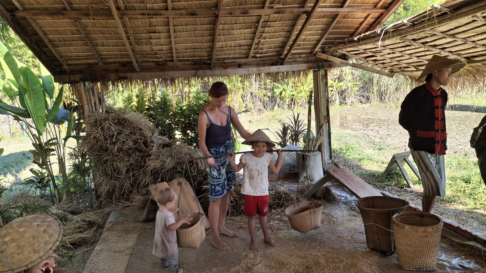 Laos oferuje bardzo dużo w aktywnościach, jakie człowiek może powziąć podczas wizyty. Zrozumiałe, że mając na pokładzie 4 małolatów – niektóre od razu idą w odstawkę (aktywności, nie dzieci) – część zaś zależy od pogody. I właśnie niskie temperatury skłoniły nas do zrewidowania swoich planów i skorzystania z listy zapasowej. A na niej była jedna, z której można by skorzystać w którymkolwiek kraju w okolicy – no ale padło na Laos – wyprawa na farmę ryżu.