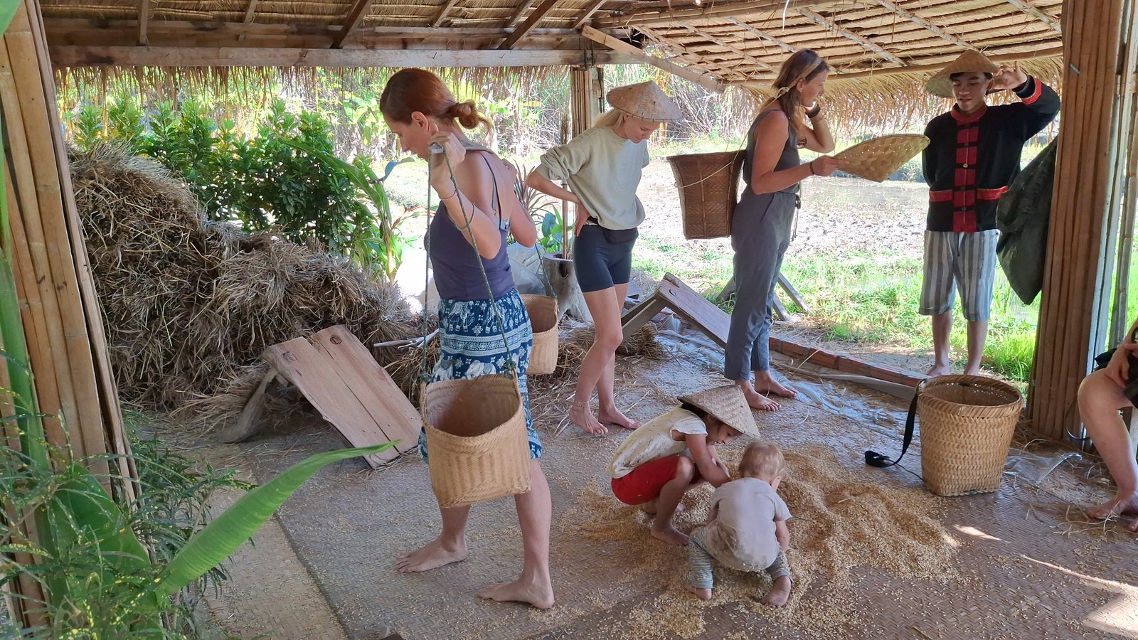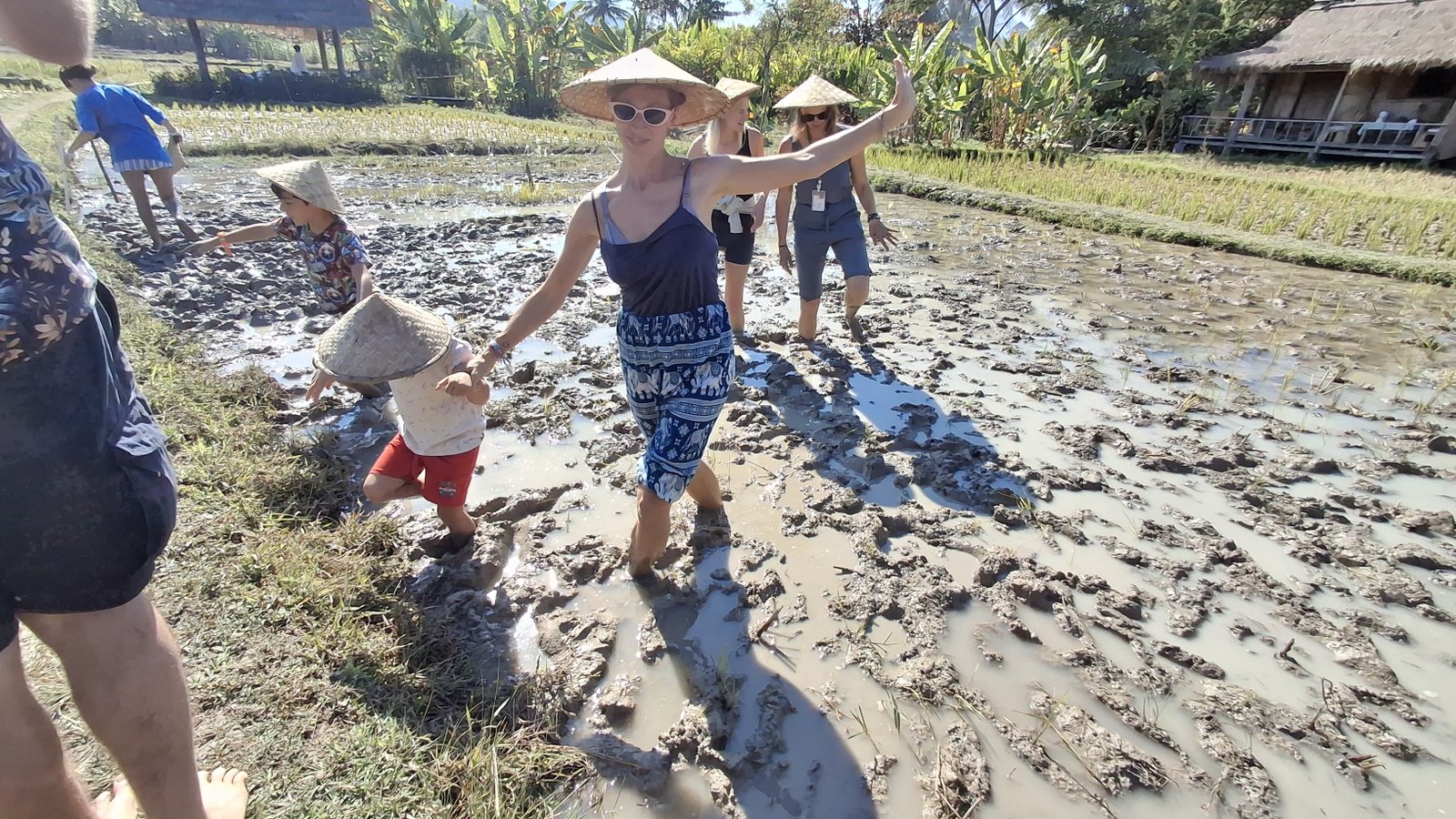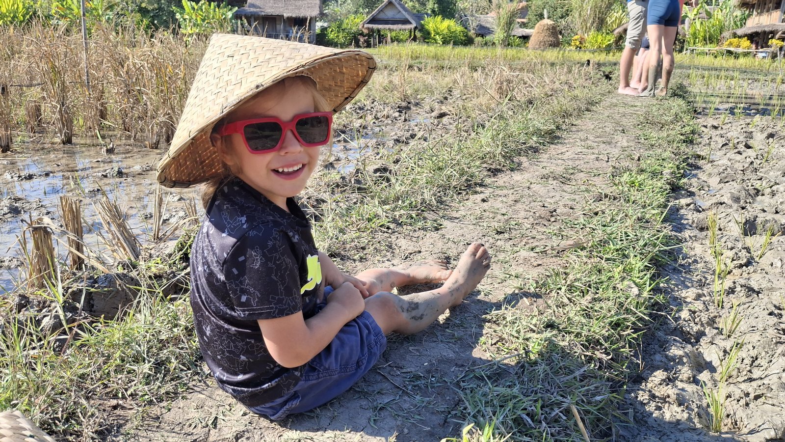 Jak podsumować ten wypad? ŚWIETNY! Zdecydowanie polecamy każdemu – i to jak widać również z dziećmi. Ciekawie jest zobaczyć od kuchni proces wytwarzania ryżu – wszak człowiek tylko kojarzy te baseny i stożkowe nakrycia głowy. Dodatkowo pogoda nam bardzo zagrała – obawialiśmy się chłodu, ale przyjechaliśmy na poobiednią turę i to był dobry wybór. Rano by nam stopy zmarzły, a tak było bardzo przyjemnie. No i sam ośrodek jest dobrze przygotowany, czysty i nawet ma miejsce do grania w siatkę i bulę (oraz, przypuszczamy inne rozrywki również). Wiedząc to wcześniej, może zdecydowalibyśmy się zostać jedną nockę (ale nie więcej, bo jednak jest to kawałek od tej pięknej części Luang Prabang). Ciągle też mamy w głowie jedną amerykankę która powtarzała, że jest to „best day ever!”.