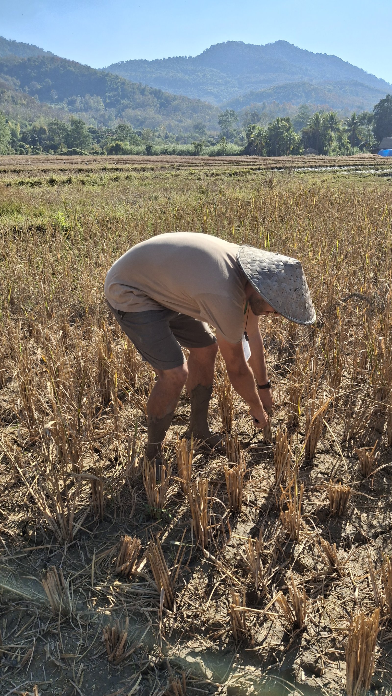 Johny wprowadzał nas w cykl wytwarzania ryżu. Proces ten opiewa 13 kroków, ale z racji złej sławy, którą cieszy się (albo nie cieszy) ta liczba – a do tego dając zadość przesądności ludzi, których los zależy od ilości opadów, poziomu rzeki, szkodników i nasłonecznienia – został dodany krok 14.: konsumpcja. Mój ulubiony…