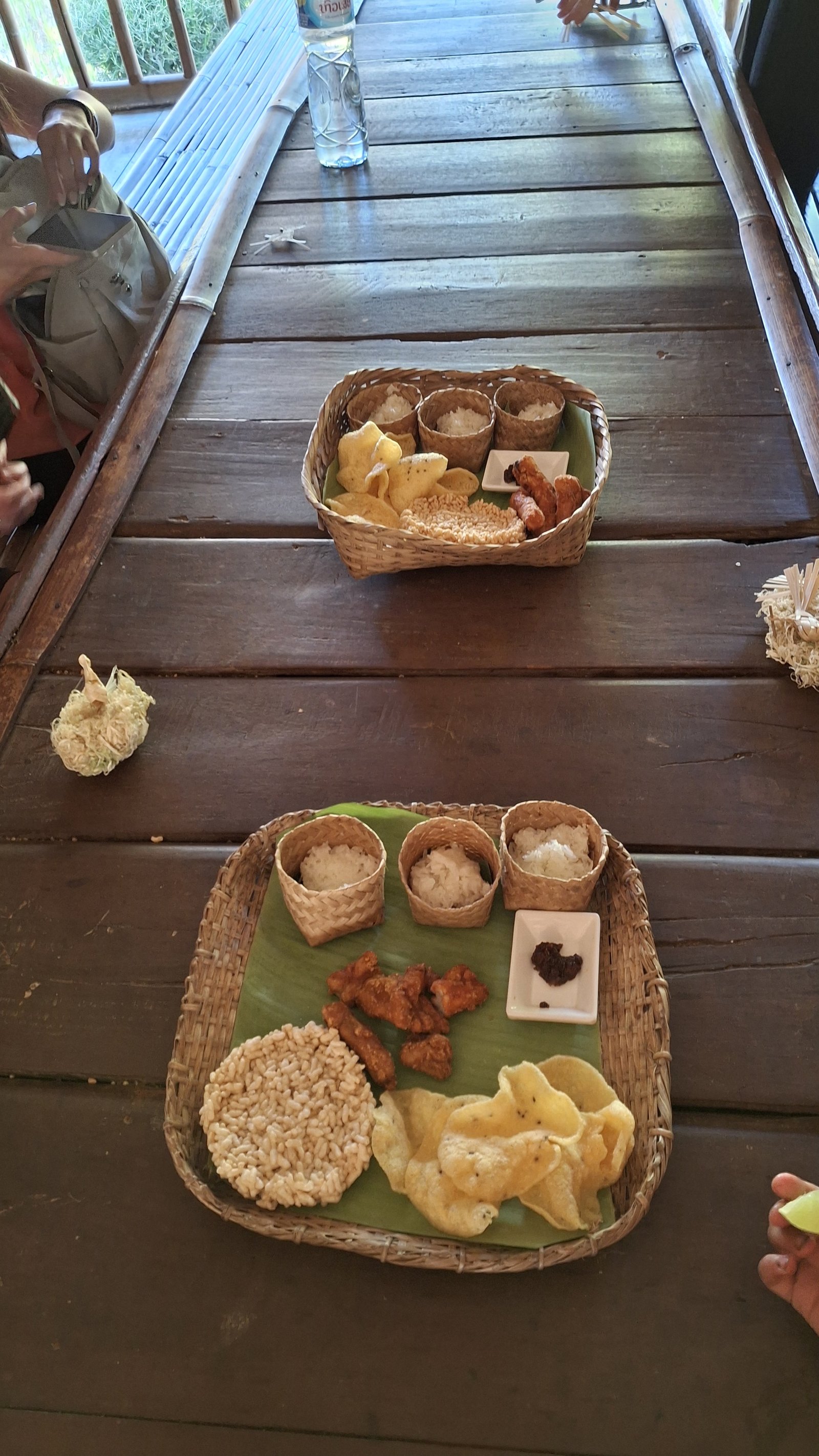 - Ryż klejący (sticky rice) – taka dosłownie mała porcja w małym koszyczku z trawy – suuuper smaczny. Człowiek może sobie myśleć, że to tylko ryż, ale to było coś więcej (czyżby doświadczenie?).