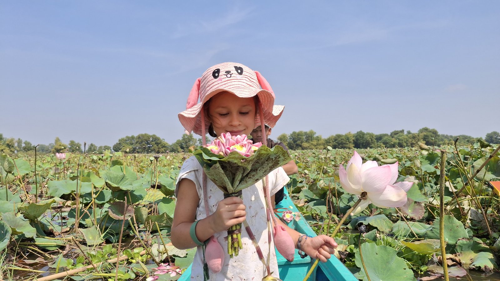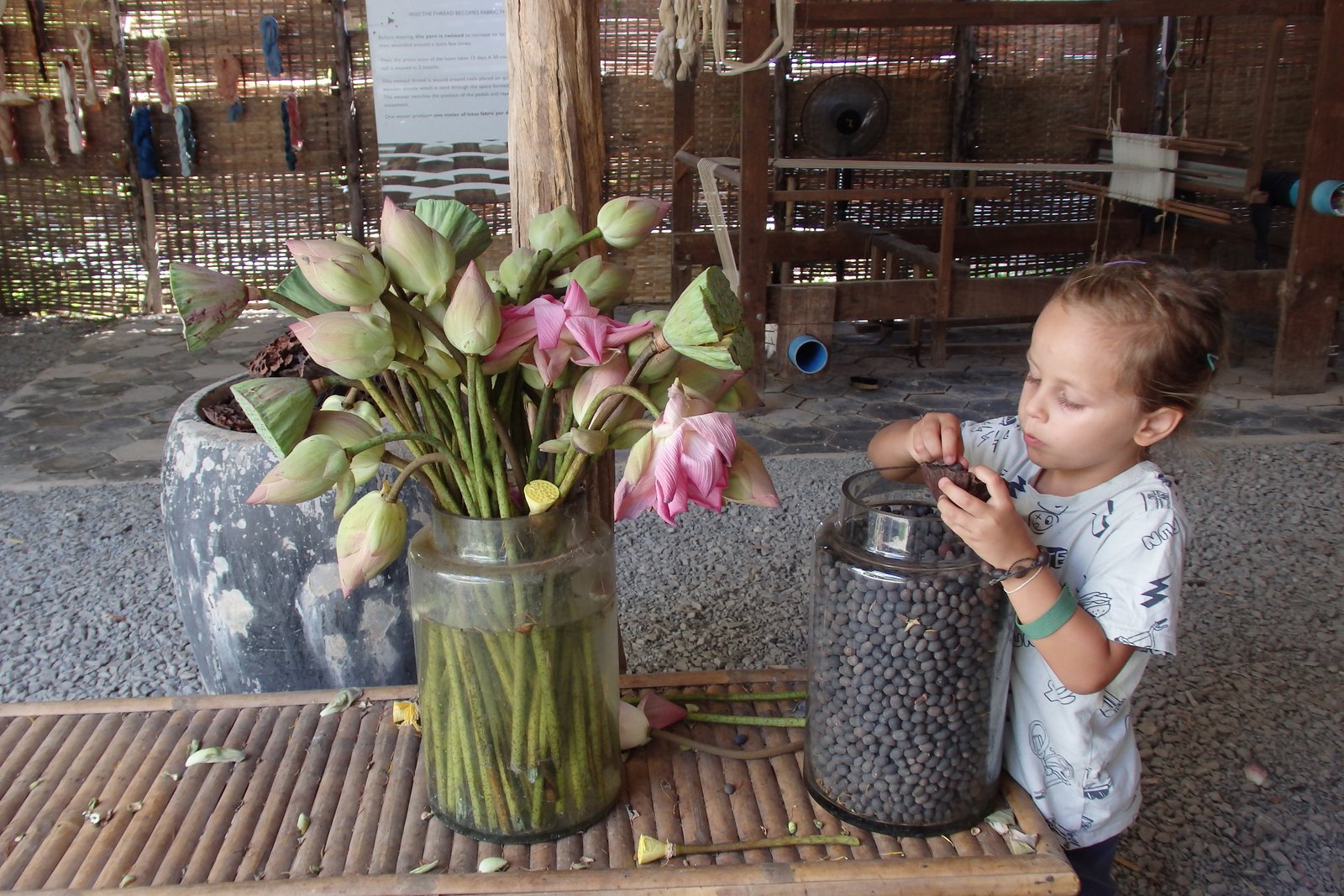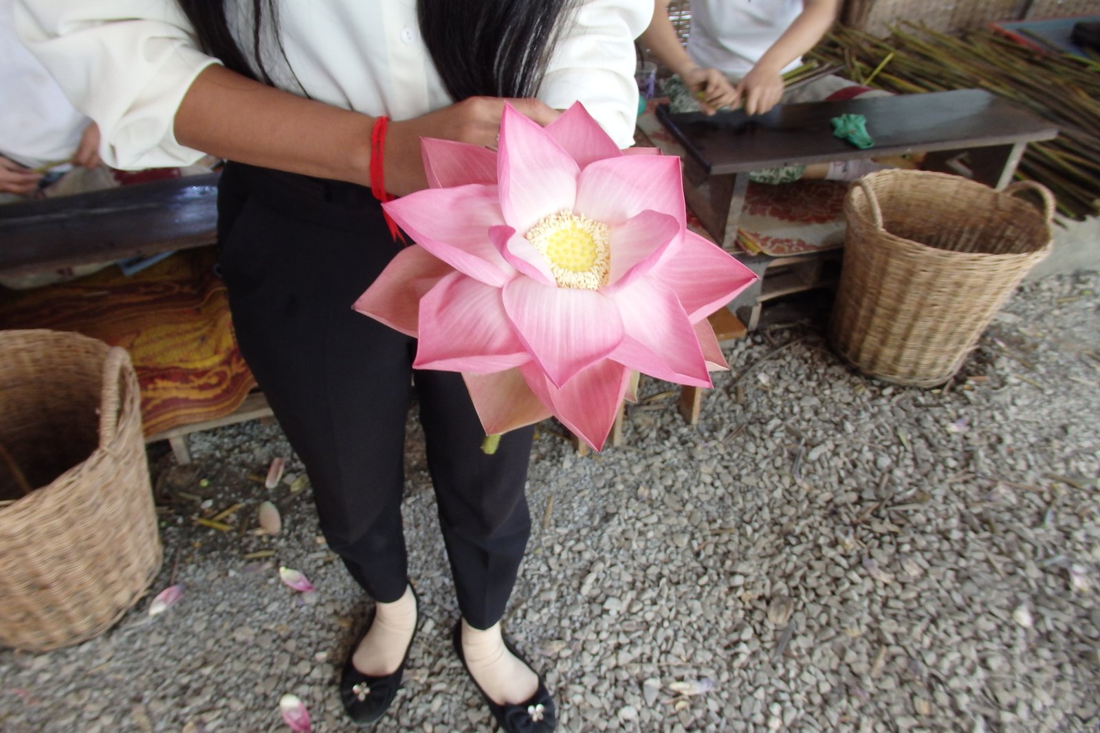 Lotos jest tutaj dosłownie i w przenośni dawcą życia. Jest to absolutnie wszechobecna roślina, która daje pracę setkom ludzi. Robi się z niego ubrania, papier, jedzenie, herbatę, ciasteczka, sznurki, tkaniny, jednocześnie wykorzystując „resztki” do dekoracyjnej biżuterii. Przy tym jest to bardzo fotogeniczny kwiat a roślina nie wymaga żadnego nakładu ludzkiej pracy. A i pozostałości z lotosu idą na przeróbkę na nawóz oraz do wytwarzania biogazu.