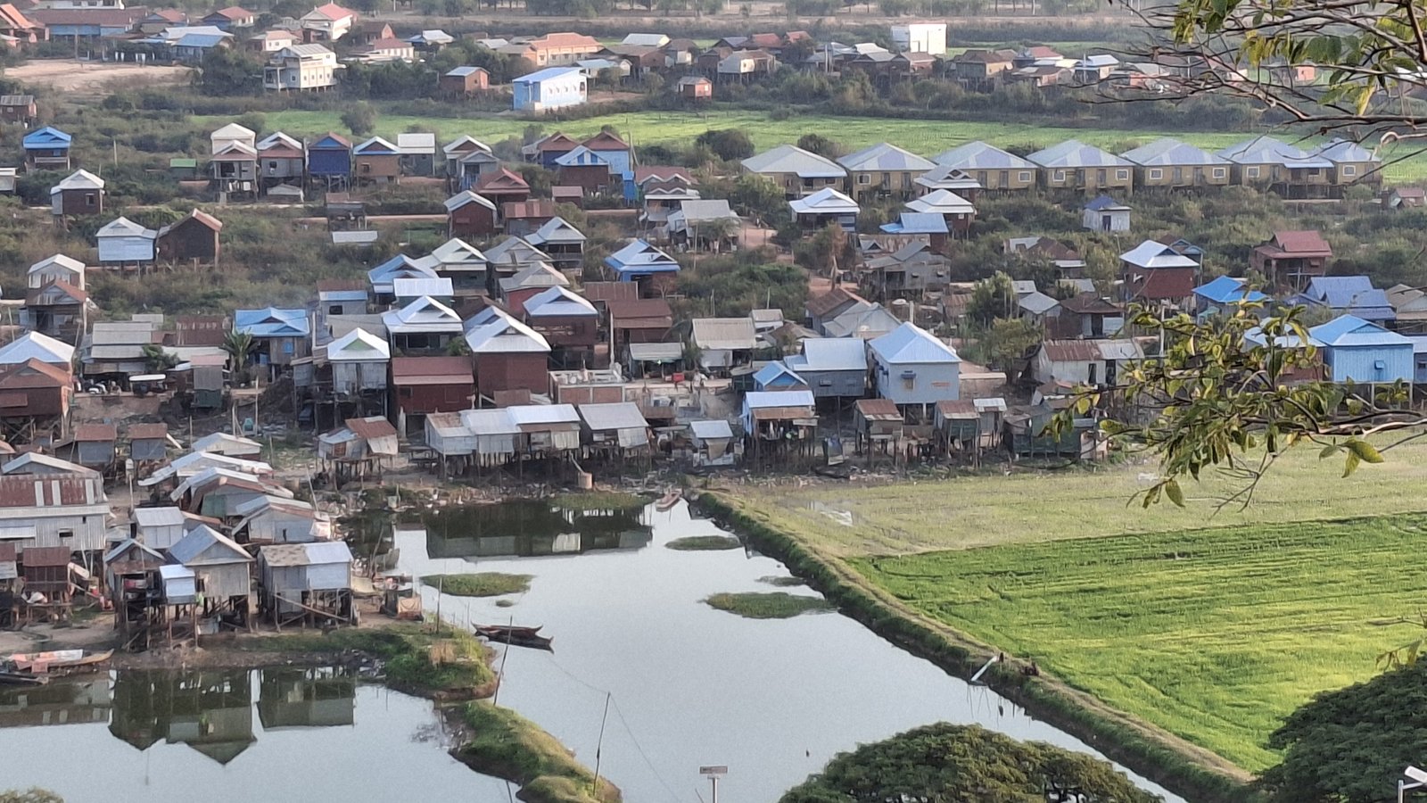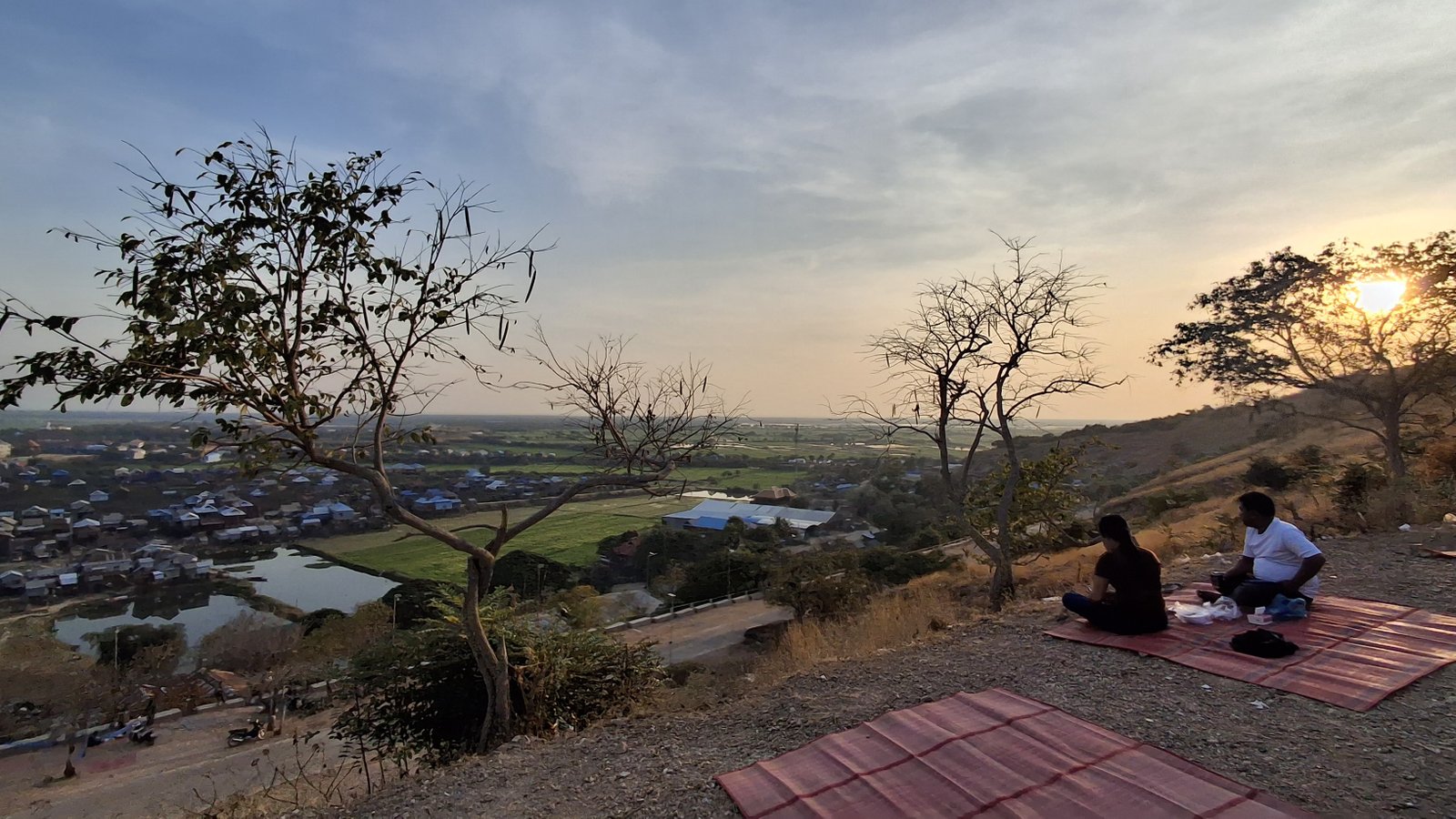 Gdy jechaliśmy na farmę lotosu, minęliśmy jedyne w okolicy wzniesienie – Wzgórze W Dół Rzeki (ភ្នំក្រោម). Nie jest to może najwyższa góra, raczej wzgórze, ale z racji płaskości okolicy, jej majestat jest zwielokrotniony. Postanowiliśmy się nań wybrać z dwóch powodów – ze względu na, podobno, najlepsze miejsce do oglądania zachodów słońca, a także – ponieważ na jej zboczu był kesz.