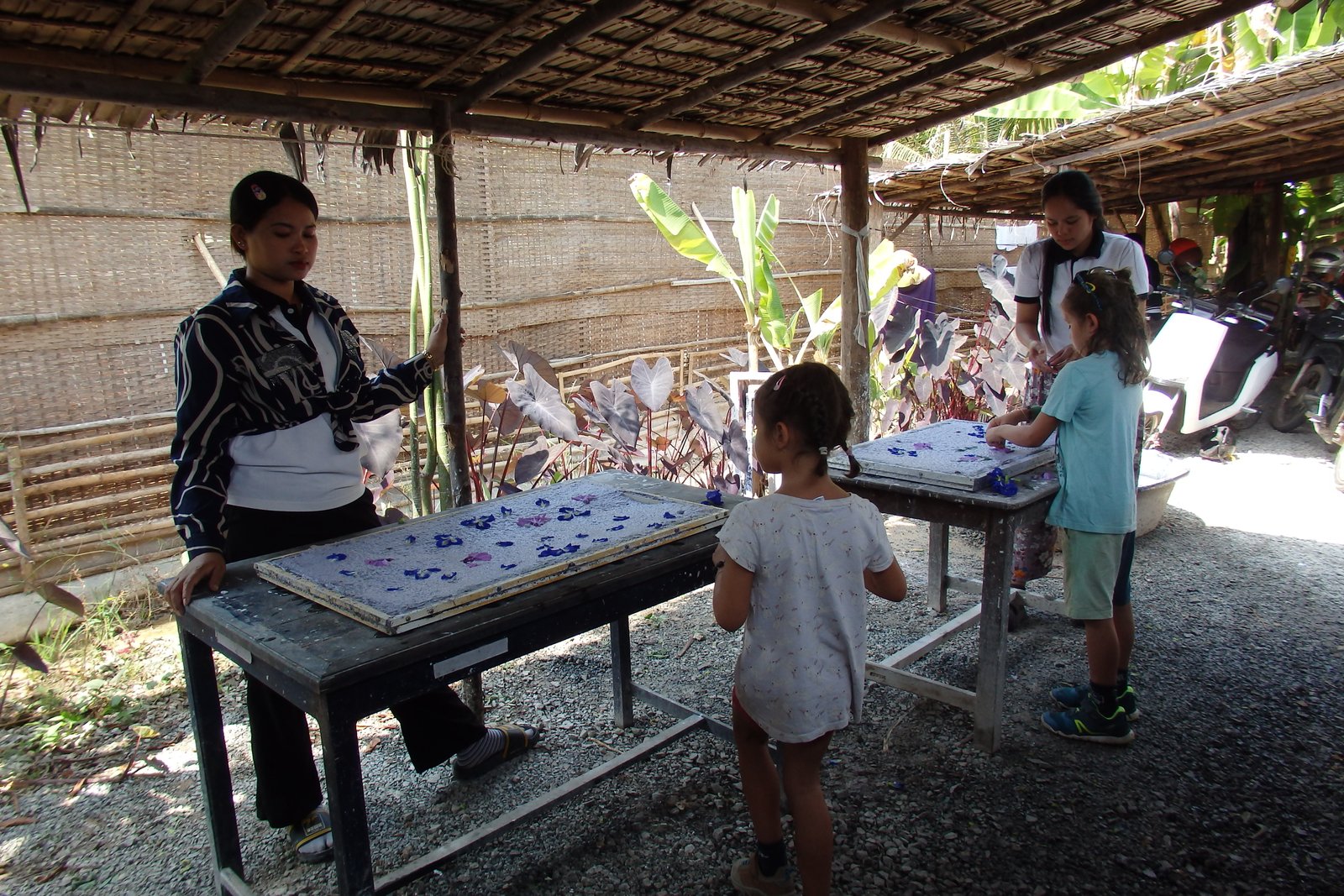 Tak stworzone dzieła zostały wystawione na suszenie na słoneczku (którego w Kambodży nie brakuje). Czas schnięcia to około jednej doby więc papier można odebrać dopiero następnego dnia albo (za opłatą 3 $) można poprosić o dowóz do hotelu.