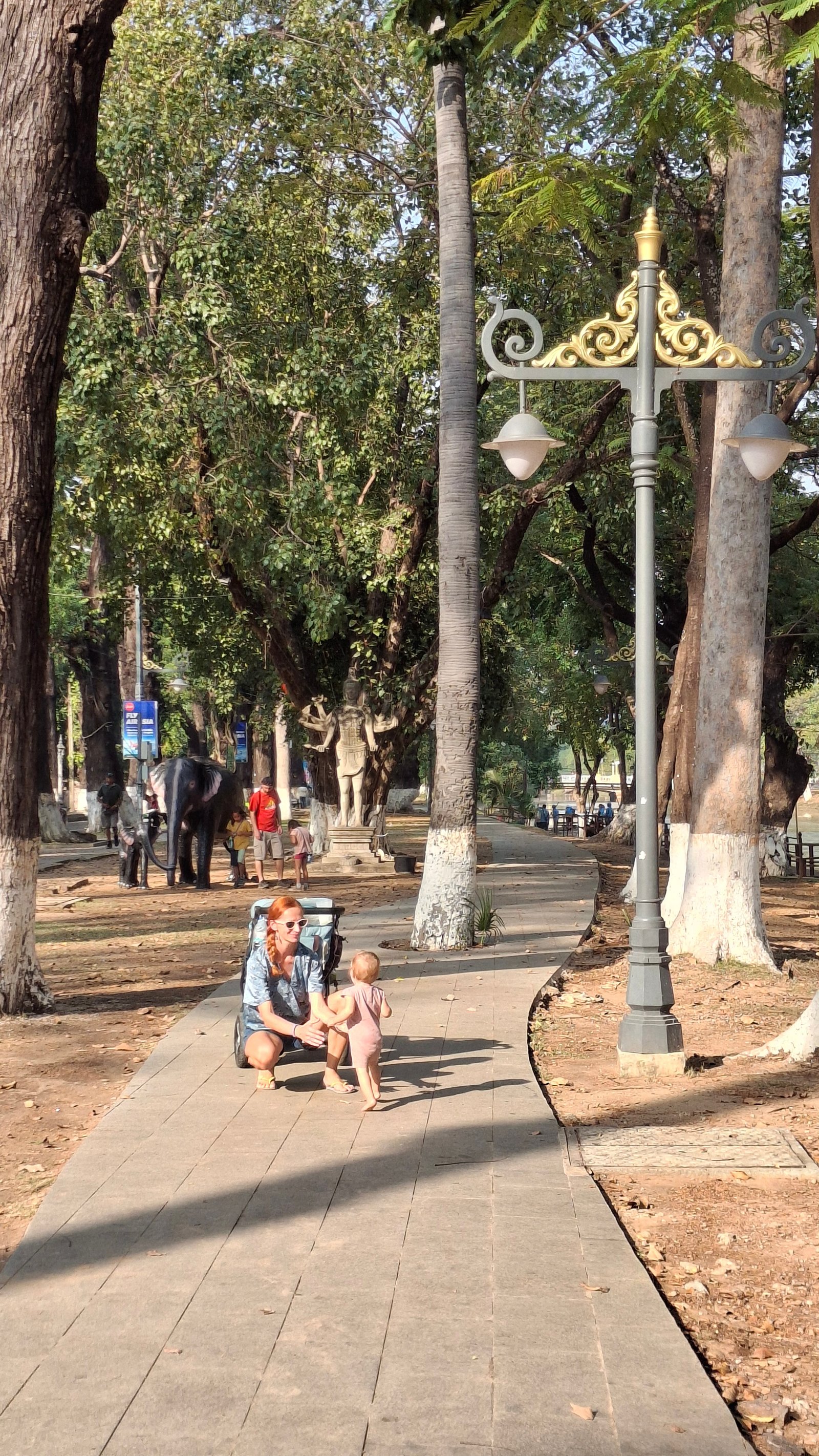 Trzeba koniecznie dodać, że mieszkańcy Kambodży wykazują się niesamowitą kulturą jazdy, o czym Bastek wspominał zawsze jak tylko gdzieś jechaliśmy. Ogólnie zauważyliśmy azjatycką tendencję poszanowania dla każdego uczestnika ruchu ulicznego ale tutaj to osiągnęło jakiś poziom kurtuazji. Każdy się zatrzyma i będzie wręcz nalegał abyś wjechał przed niego, pieszy natomiast nie jest przeszkodą a taką małą świętością. Moglibyśmy zaryzykować przejście przez ulicę z zamkniętymi oczami i mieć 99% pewność, że nic nam się nie stanie (ta pewność nie dotyczy dzieci bo Aurora to odpowiednik sarny wśród naszej ekipy, wskoczy pod każdy nadjeżdżający pojazd ale dopiero jeśli będzie odpowiednio blisko). Z całej znanej nam Azji to Khmerowie wygrywają nieistniejący konkurs kulturalnego poruszania się po drogach. Powyższa uwaga nie dotyczy ciężarówek – te, rozpędzone, bardzo głośne bo jadące na pełnym klaksonie, zawsze będą miały pierwszeństwo na skrzyżowaniu – niezależne od oznaczeń pionowych i poziomych.