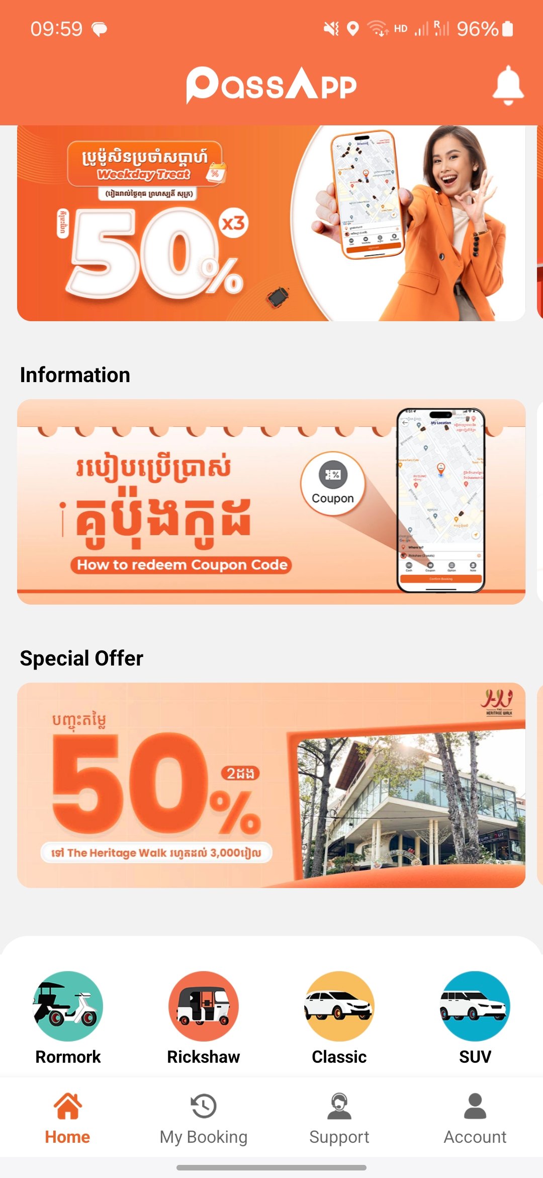 - PassApp. Jest to produkt dla lokalsów i praktycznie tylko przez nich używany. Nasz host jakby przypadkowo się „wygadał”, że coś takiego istnieje ale podkreślał, że to jest głównie dla Khmerów. My różnicy (poza niższą ceną) nie widzieliśmy chociaż zdarzało się, że kierowcy z PassApp nie znali angielskiego.