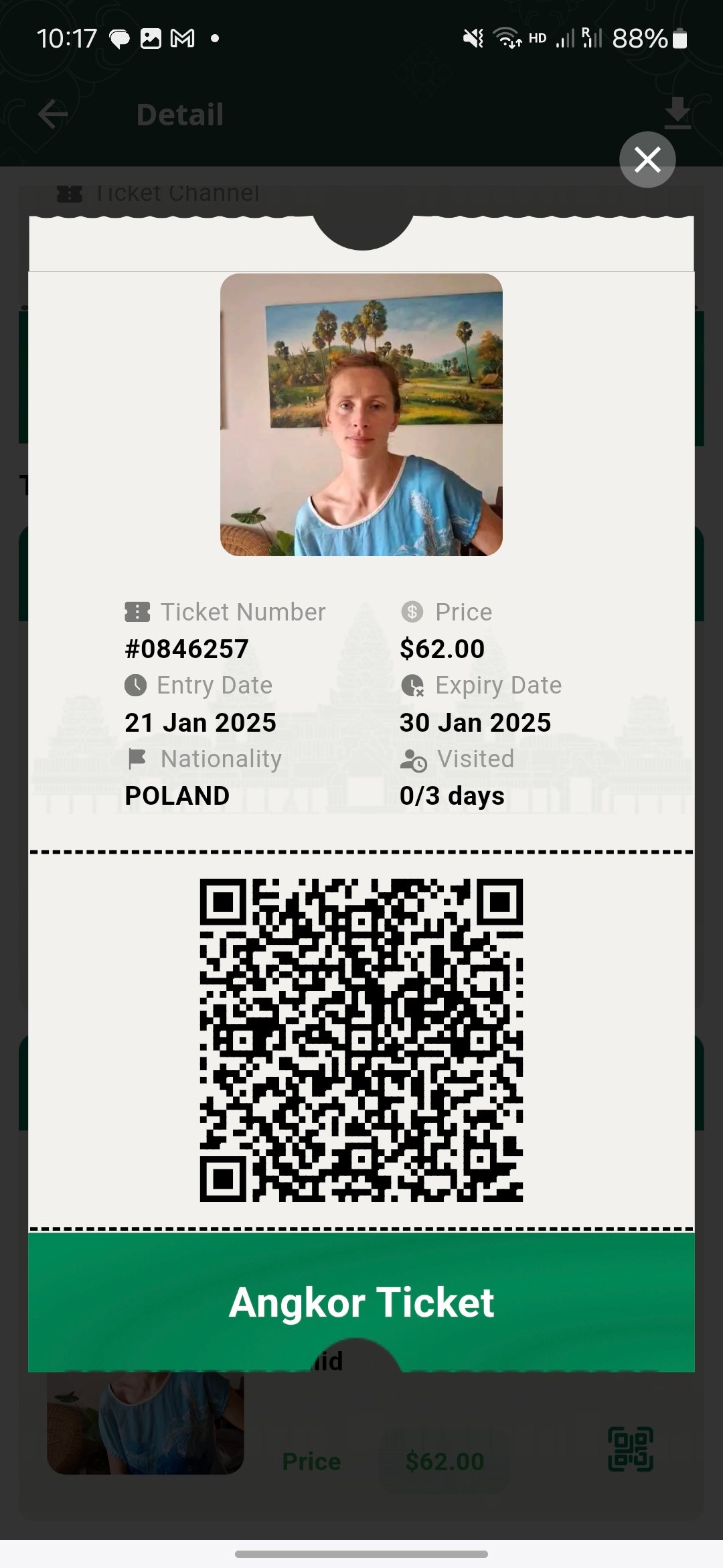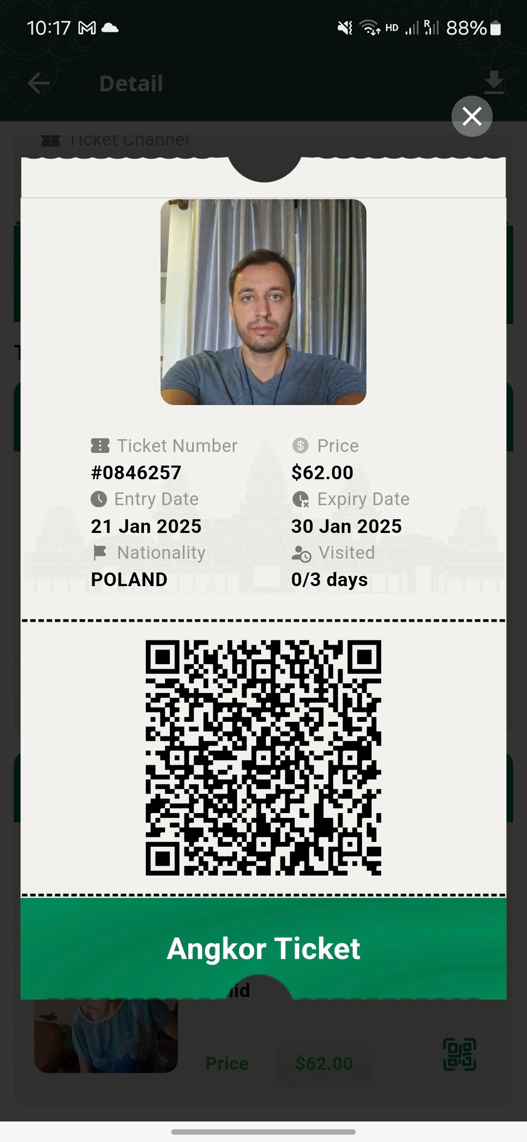 - Angkor Pass. Aplikacja z biletami do Angkor Wat. Polecamy, by uniknąć konieczności odwiedzania punktu zakupu biletów (co kosztuje dodatkowe dolary dla taksówkarza, a także czas potrzebny do stania w kolejkach bo kasy znajdują się 4 kilometry od kompleksu świątynnego). Jedyny minus takiego rozwiązania, to konieczność zrobienia sobie zdjęcia (co widać na załączonych obrazkach). Bilet sprawdzany jest przed wejściem do każdej świątyni.