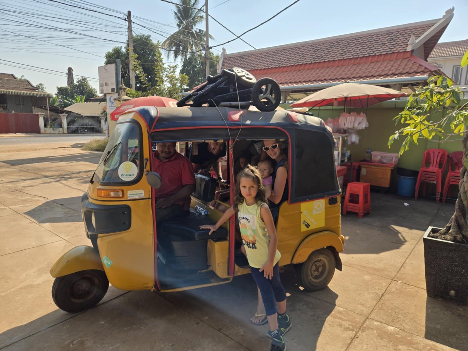 A i informacja dla wszystkich troskliwych rodziców, którzy słuchają producentów fotelików i je wymieniają na nowe, gdy takowy im upadnie z wysokości 1 metra – fotelików tutaj nie ma – w tym momencie nawet nie przyszło nam do głowy o takowy pytać, zdaliśmy się na wszechświat i azjatyckie umiejętności (i doświadczenie) prowadzenia w takich warunkach. Inna kwestia, ze taki pojazd potrafi rozpędzić się do zawrotnych 40km/h a w praktyce jeździ o połowę mniej.