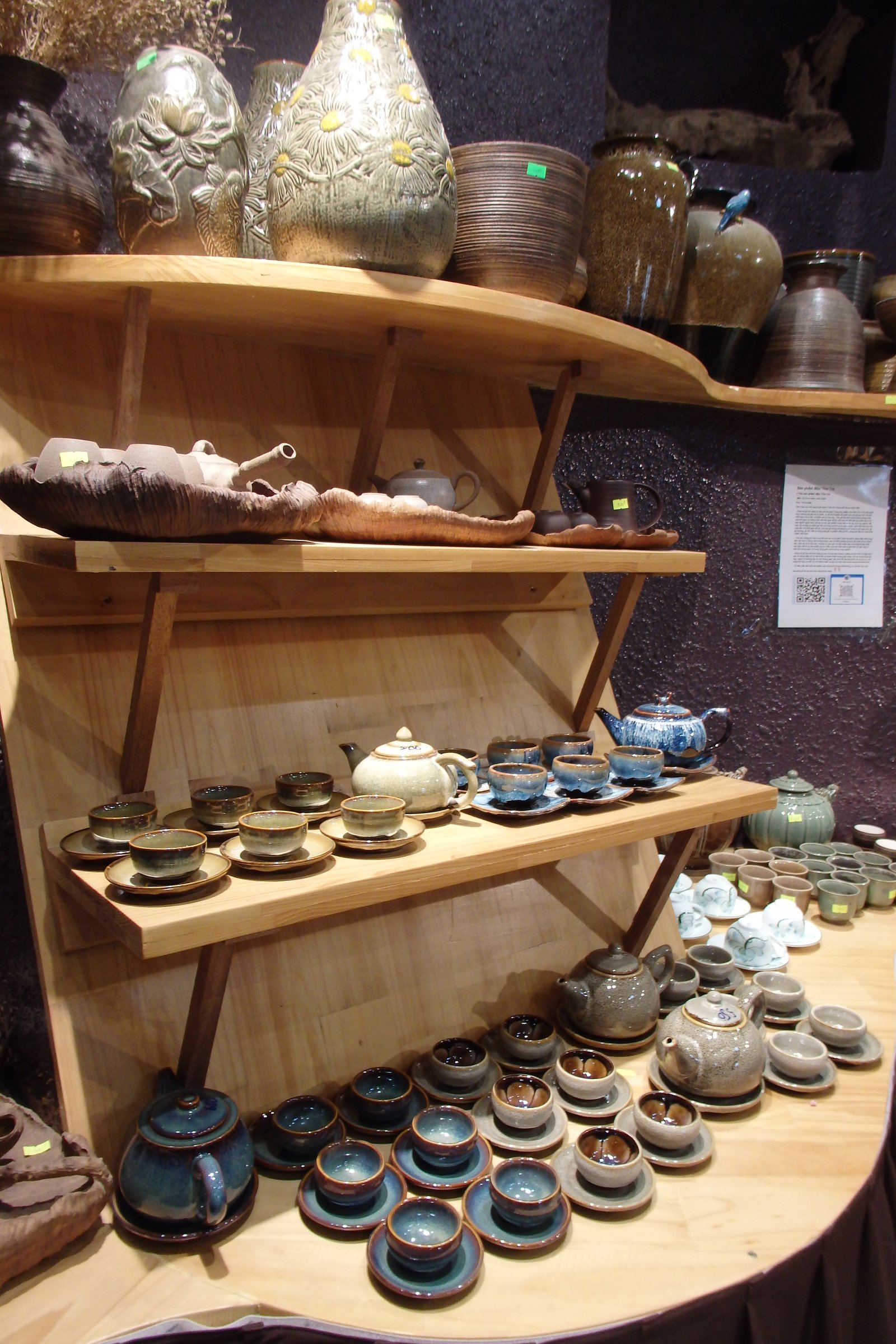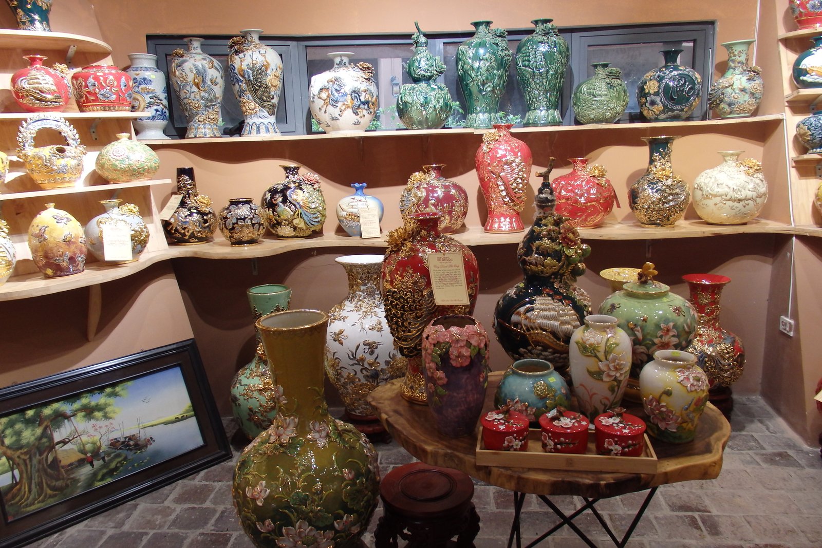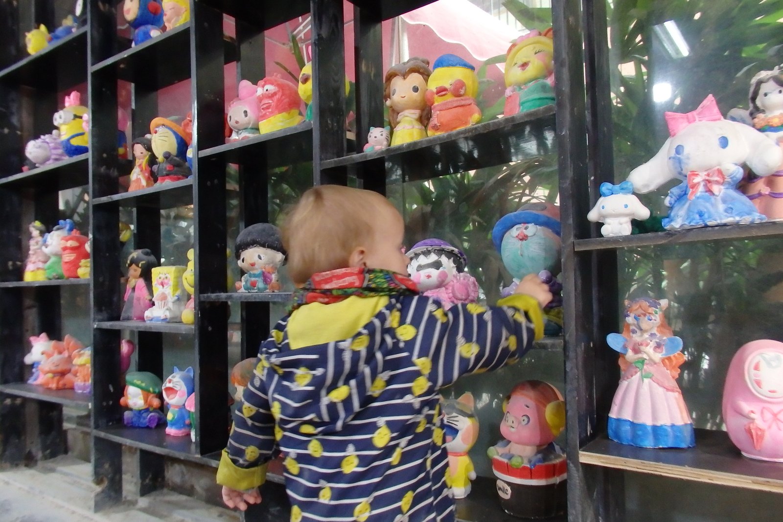 W muzeum spędziliśmy dużo czasu i moglibyśmy już wracać, ale byliśmy na miejscu, a dojazd trwa godzinę, więc na pewno już tutaj nie wrócimy (przynajmniej nie na tym wyjeździe), dlatego ruszyliśmy ku centrum tejże dzielnicy. Poprzednie zdanie jest dość długie ale tak właśnie wyglądał nas dialog w tamtym momencie. Z każdym przebytym metrem ilość miejsc sprzedających wyroby garncarskie wzrastała wykładniczo. Ścieżki prowadziły do centralnego bazaru, gdzie różnorodność wyrobów z ceramiki przyprawiało o zawrót głowy (a już na pewno o zawał serca z trójką wolnobiegającą, czwarte na szczęście było przytwierdzone do wózka). Na miejscu można było znaleźć rzeczy wszelakie i kruche – figurki postaci rzeczywistych i tych niekoniecznie, skarbonki świnki, pandy, czy żółwie, wazy rozmiaru od naparstka do pojemnika na nielubianych sąsiadów, zestawy talerzy w deseń kubków i kubków z deseniem talerzy, węże, ryby, minionki, garnuszki, żaby i ogrom rzeczy, które nie powinny być zrobione z ceramiki, a były.