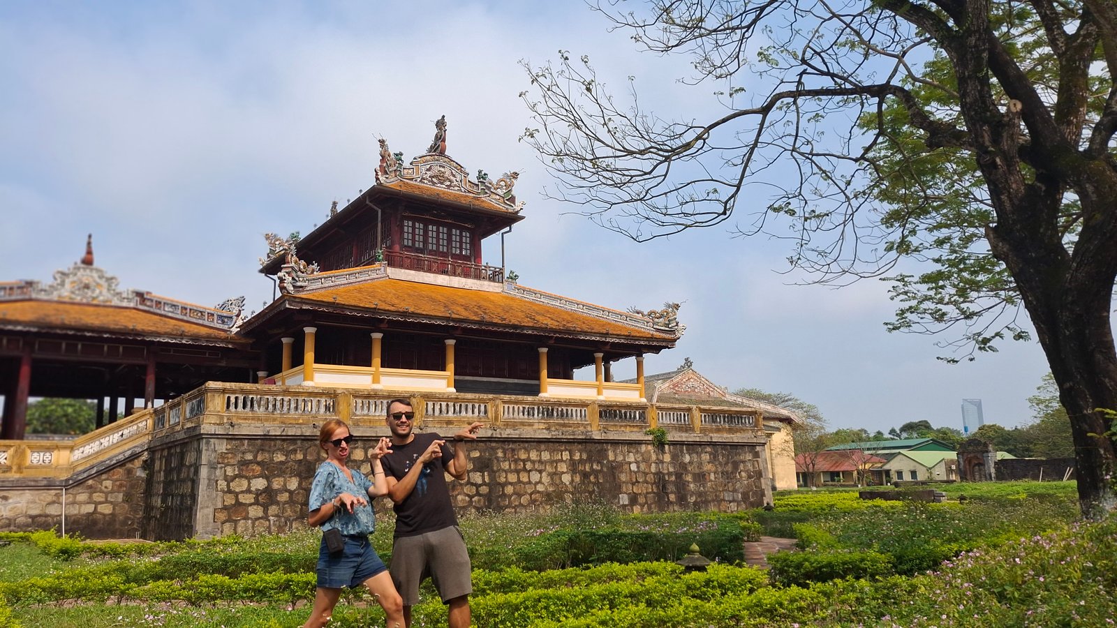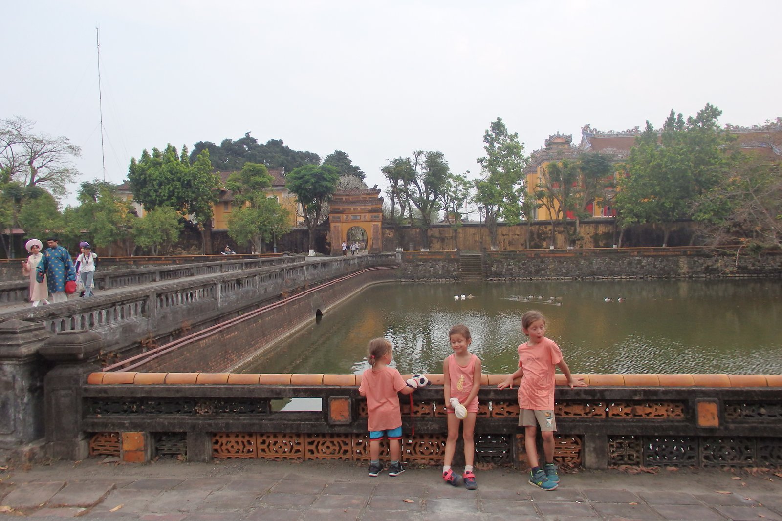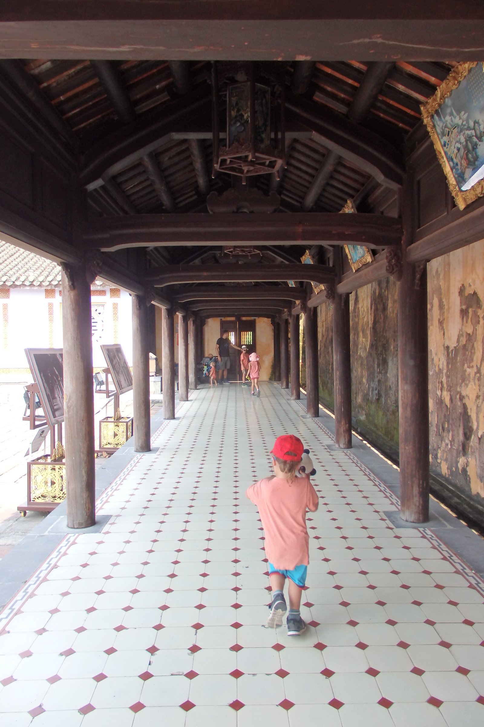 Cytadela została zaprojektowana przez cesarza Gia Long, założyciela dynastii Nguyen, który wzór oparł na Zakazanym Mieście w Pekinie, chcąc podkreślić potęgę nowej i legitymację nowej dynastii. Pekińskie Zakazane Miasto nazywane jest również Purpurowym Miastem (hej, byliśmy tam! Przypominajka: Cesarz Pierścieni), więc ta nazwa również się i tu przyjęła. Mowa tu o tej najbardziej wewnętrznej części, do której dostęp miał jedynie cesarza, jego rodzina i wybrani eunuchowie (a mówili, że to kariera bez przyszłości). Główną bramę z pałacem przed Zakazanym Miastem łączy coś w co sugeruje most, ale jest bardziej ścieżką. Można to nazwać takim podjazdem, ale nie bądźmy złośliwi. Wspomniany pałac Thái Hòa u jego końca służy obecnie jako przestrzeń wystawienniczą, gdzie można zobaczyć cesarski tron – to tutaj władca przyjmował gości.