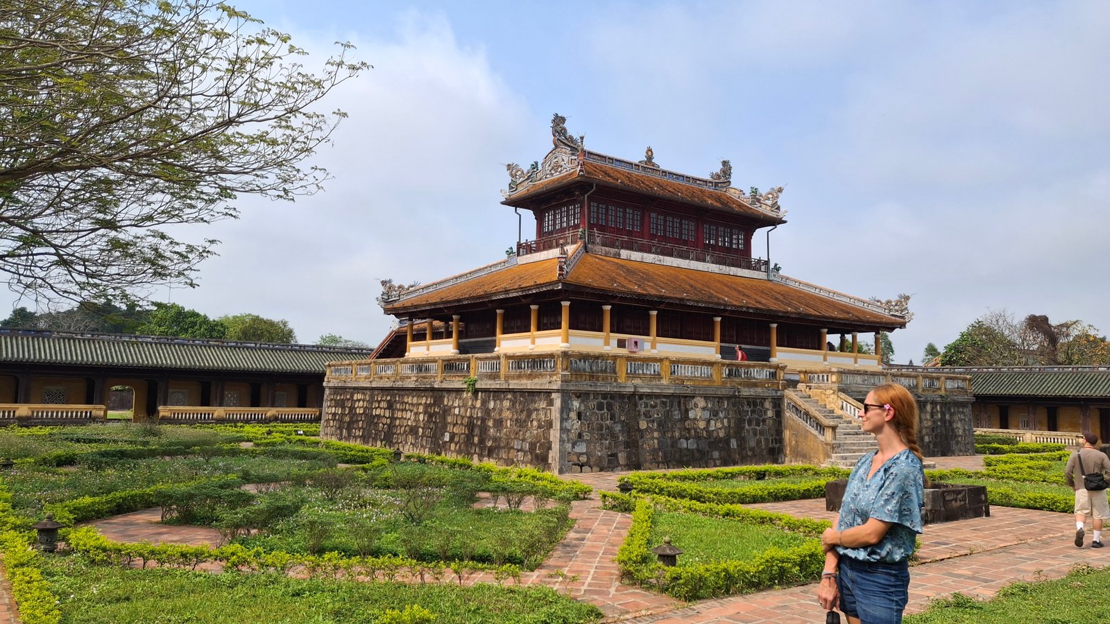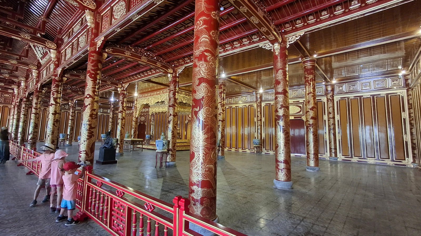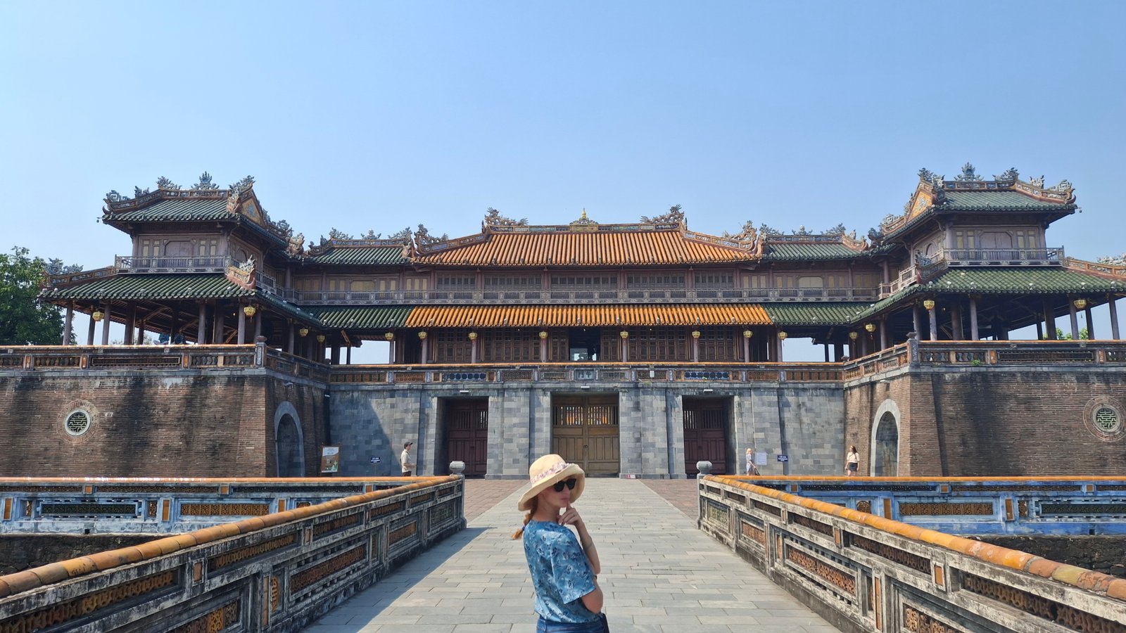 Cytadela została zaprojektowana przez cesarza Gia Long, założyciela dynastii Nguyen, który wzór oparł na Zakazanym Mieście w Pekinie, chcąc podkreślić potęgę nowej i legitymację nowej dynastii. Pekińskie Zakazane Miasto nazywane jest również Purpurowym Miastem (hej, byliśmy tam! Przypominajka: Cesarz Pierścieni), więc ta nazwa również się i tu przyjęła. Mowa tu o tej najbardziej wewnętrznej części, do której dostęp miał jedynie cesarza, jego rodzina i wybrani eunuchowie (a mówili, że to kariera bez przyszłości). Główną bramę z pałacem przed Zakazanym Miastem łączy coś w co sugeruje most, ale jest bardziej ścieżką. Można to nazwać takim podjazdem, ale nie bądźmy złośliwi. Wspomniany pałac Thái Hòa u jego końca służy obecnie jako przestrzeń wystawienniczą, gdzie można zobaczyć cesarski tron – to tutaj władca przyjmował gości.