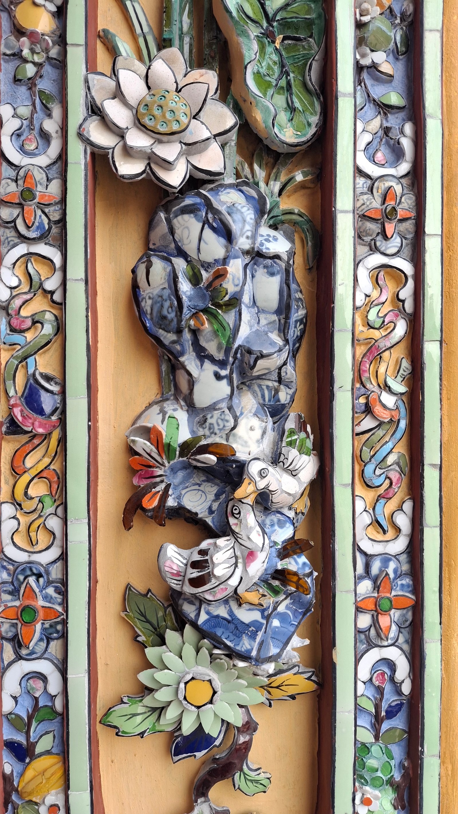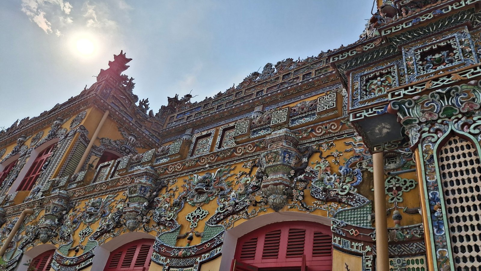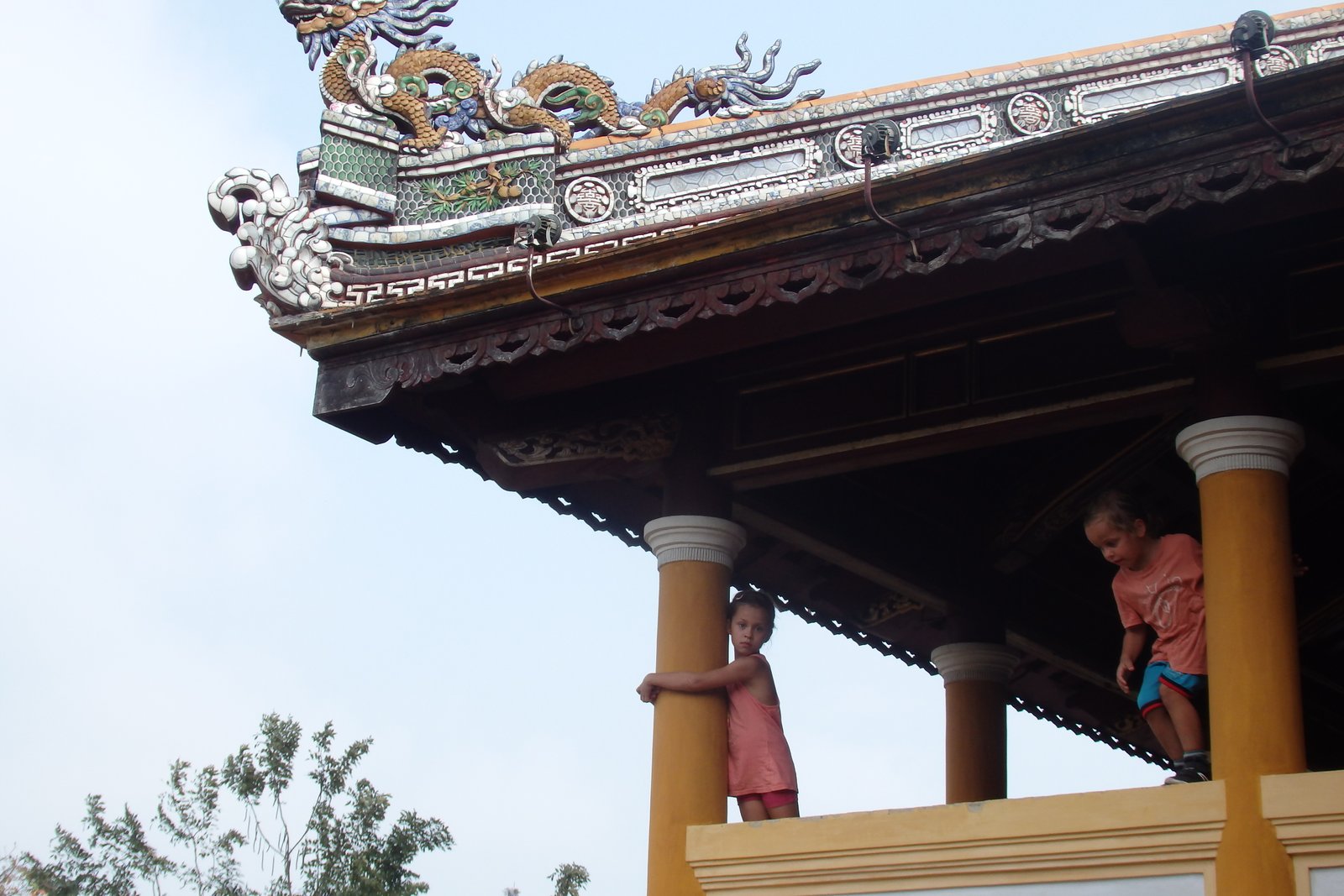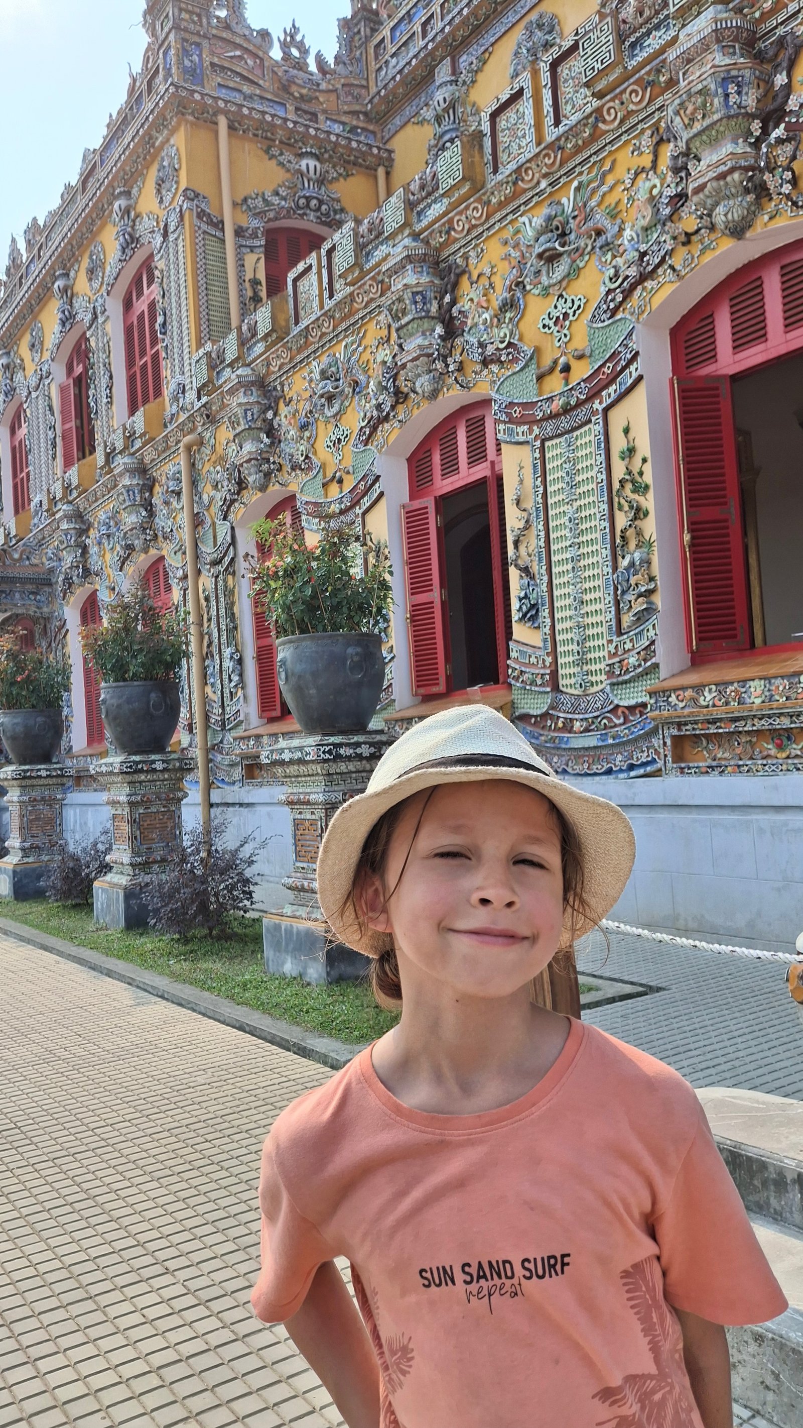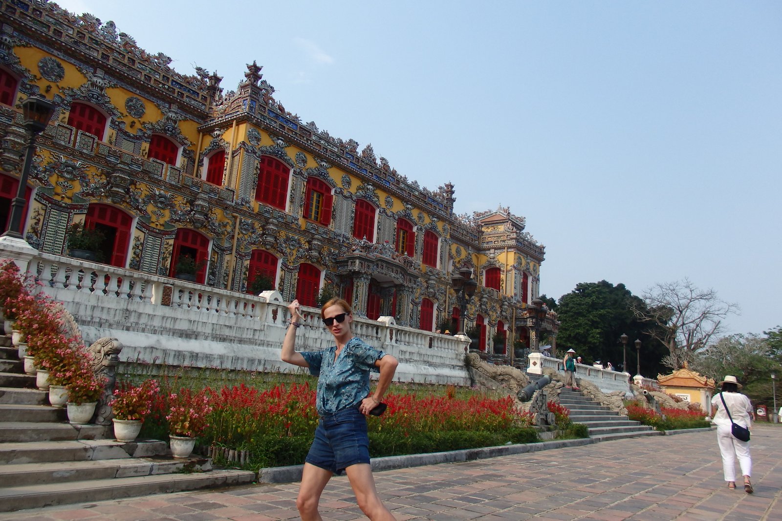 Zwieńczeniem cytadeli był pałac Cung Khôn Thái. Jakby go określić… Wietnamski Barok (tfu!)? Kiedy Chcesz Wszystkie Style Na Raz? Była Promocja Na Ozdoby Ceramiczne? Choinka Wersja Mieszkalna? Może będziecie mieli lepsze pomysły, ale można go w sumie podsumować jako jedna z najbardziej przystrojona budowla na naszej wyprawie. Ale, co zaskakujące, nie ociekała kiczem! Mimo pstrokatości i ogromu ozdób, miała swoją harmonię i była całkiem spójna. Aczkolwiek działo się tam i to sporo. Zasadniczo odnieśliśmy wrażenie, że wszystkie wycieczki jakie wchodzą do kompleksu kierują się od razu tutaj omijając wszystkie urocze zakątki.