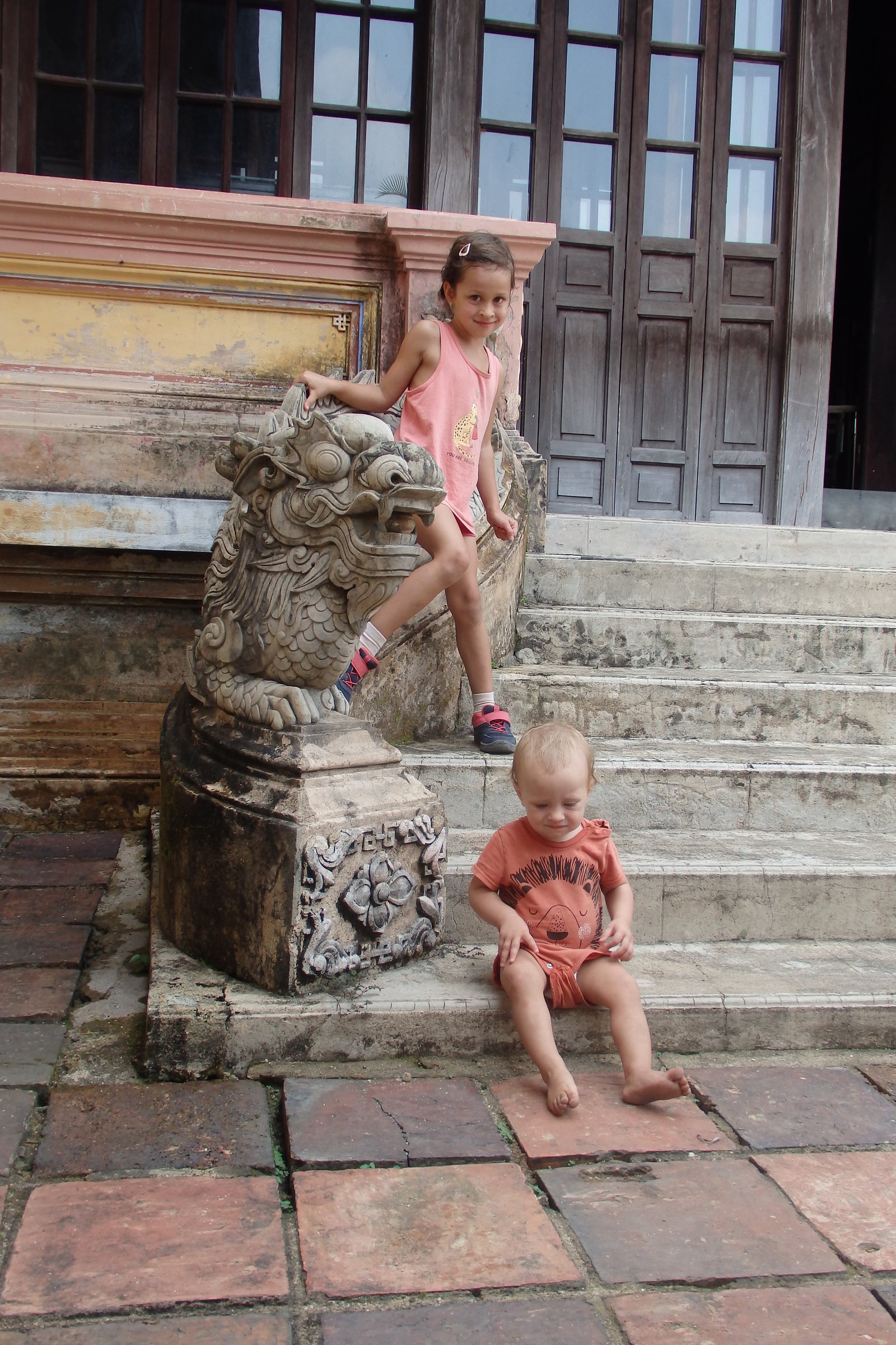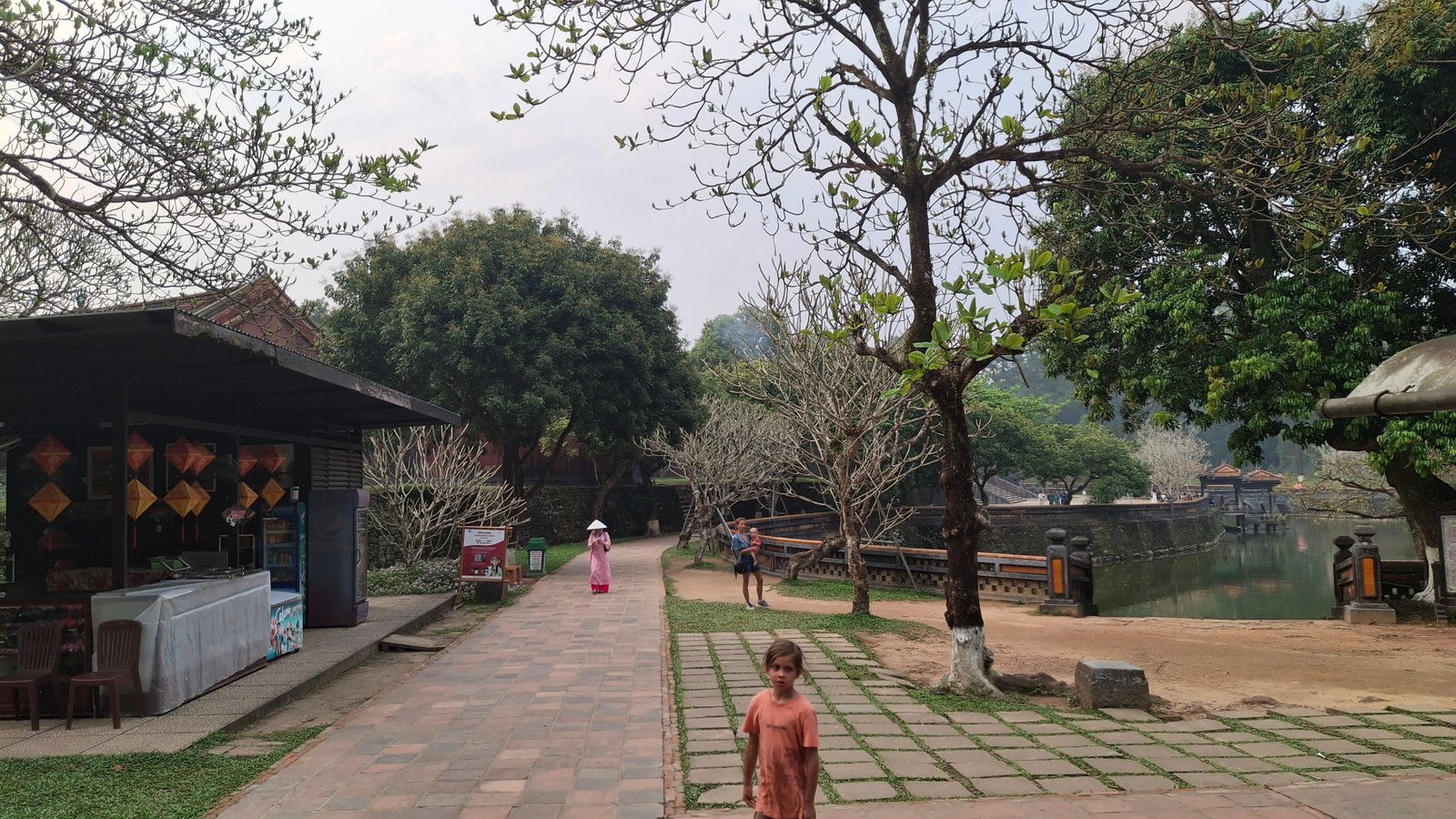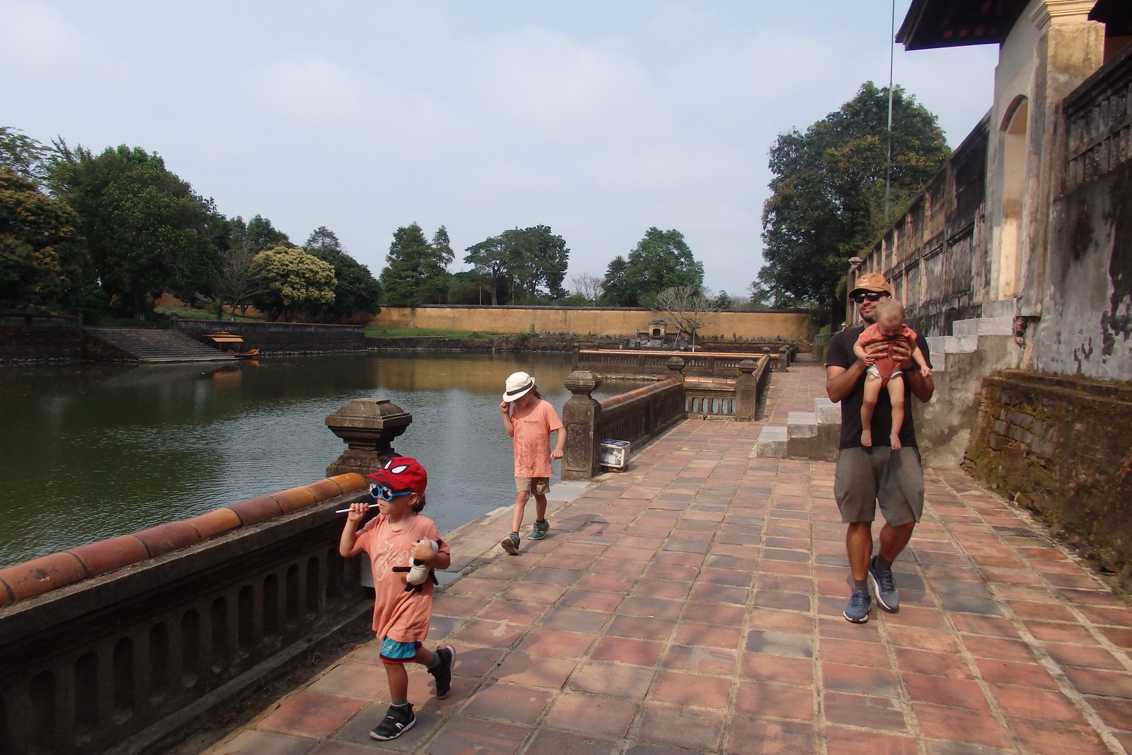 A było gorąco – dzieci motywowaliśmy obiecanymi lodami, zaś siebie pięknymi widokami zza rzeki na mury. Rzeką Perfumową też można sobie popływać – jedną z polecanych aktywności jest właśnie taki rejs wzdłuż murów. Spacer jednak był błędem – słoneczko bardzo mocno grzało, zaś my w ten sposób jednak marnotrawiliśmy rzadkie zasoby dziecięcych sił do chodzenia.