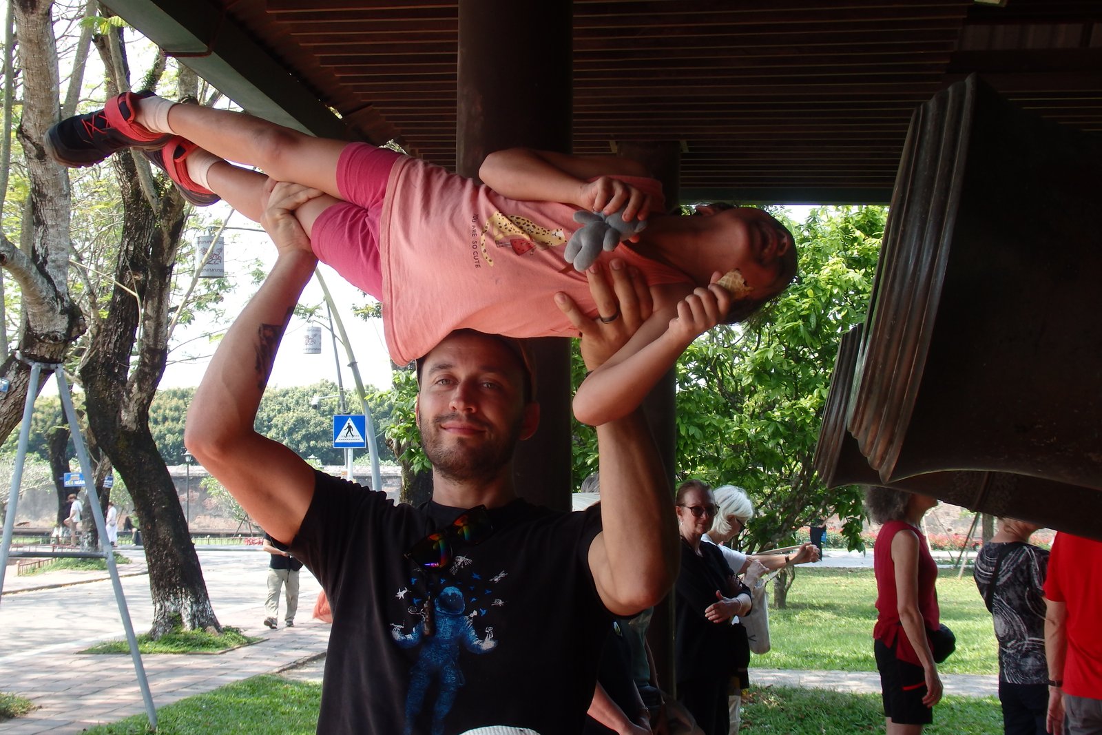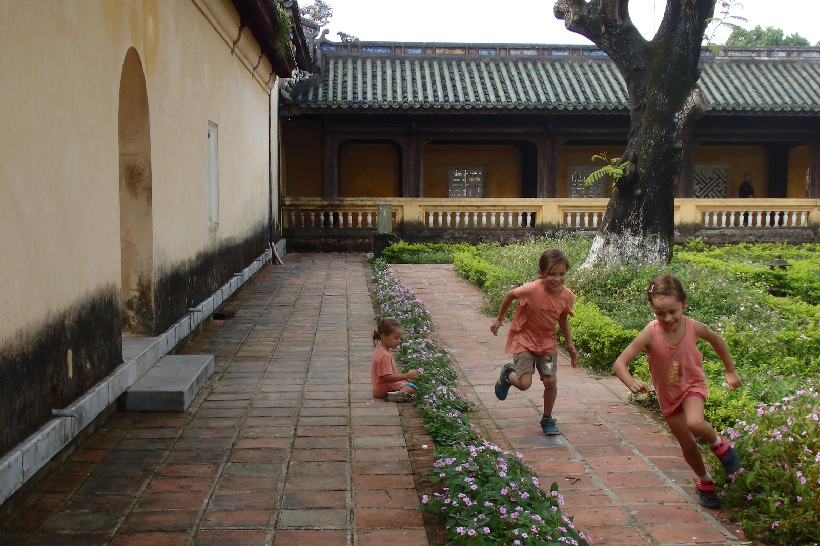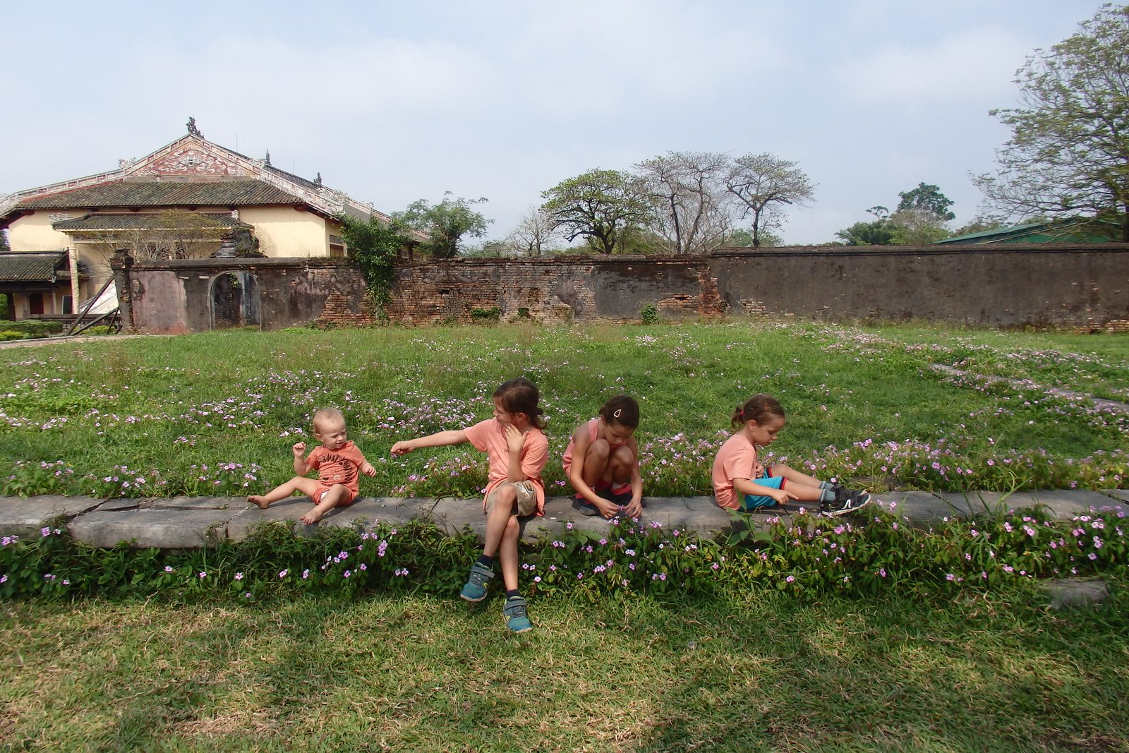 A było gorąco – dzieci motywowaliśmy obiecanymi lodami, zaś siebie pięknymi widokami zza rzeki na mury. Rzeką Perfumową też można sobie popływać – jedną z polecanych aktywności jest właśnie taki rejs wzdłuż murów. Spacer jednak był błędem – słoneczko bardzo mocno grzało, zaś my w ten sposób jednak marnotrawiliśmy rzadkie zasoby dziecięcych sił do chodzenia.