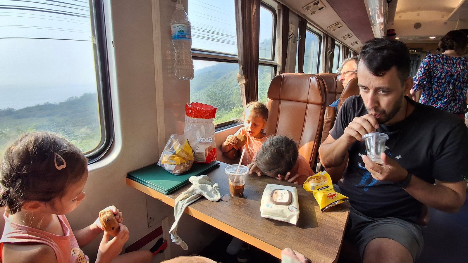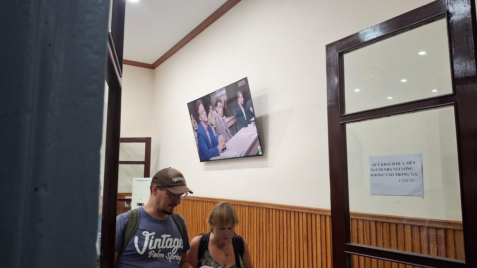 Zaparkowaliśmy na dworcu. Długa piesza przeprawa zaowocowała zmęczeniem dzieci (hura!) więc grzecznie zasiadły na terenie obiektu i ani myślały się przemieszczać. Ja wyruszyłem z misją zdobycia pokarmu – udało mi się przynieść ciepłe wietnamskie buły Banh, zaś dzieci zafascynowane (i wdzięczne, że w końcu mogą sobie usiąść) wpatrywały się w ekran telewizora w poczekalni. A na ekranie wyświetlany był – nie kto inny, jak znany na całym świecie – Jaś Fasola. Jak widać humor slapstickowy jest ponadnarodowy i działa na wskroś przekroju wiekowego. Dzięki Jaśku!