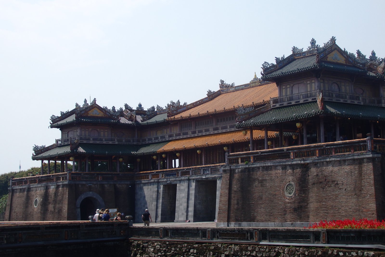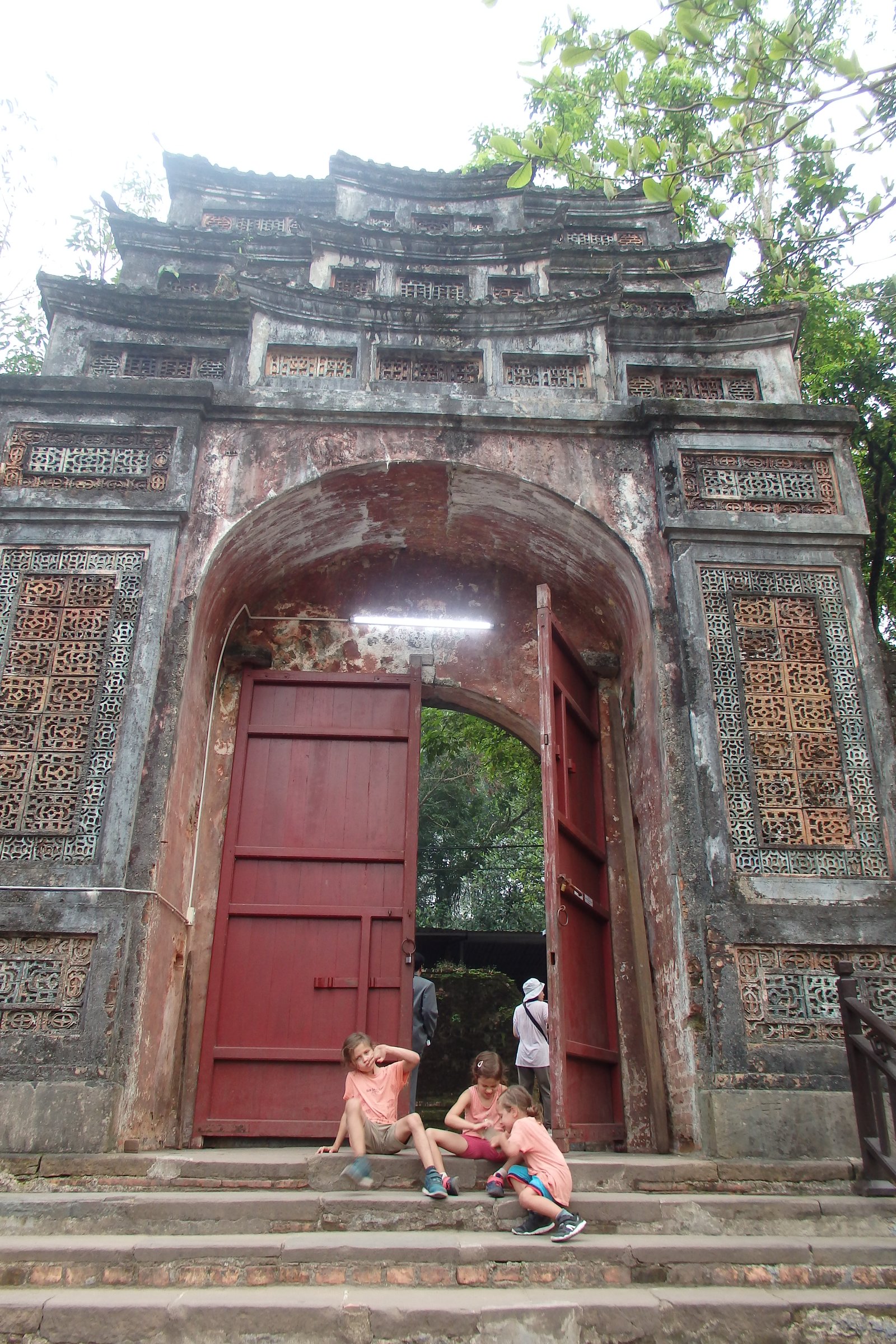 Przejdźmy zatem gęsiego przez pierwszą warstwę murów obronnych – brama cửa Thể Nhân jest tak wąska, że zmieszczą się w niej 3 końskie zadki, lub małe auto i pieszy (myśmy wskoczyli przed wycieczkę, by nie czekać w kolejce zbyt długo na przeprawę).
