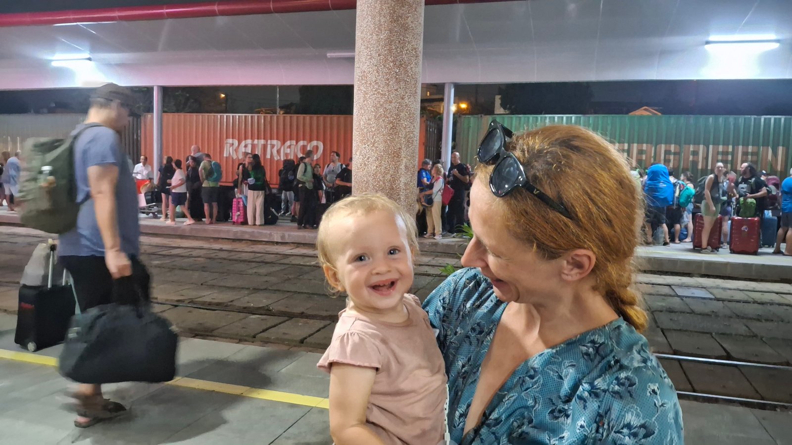 Okropni z nas rodzice, że tak zmuszamy dzieci do ciągłego chodzenia, ale dłuższą przerwę zrobiliśmy sobie na napotkanym placu zabaw, gdzie jedną karuzelę obsiadały już okoliczne nastolatki. Były one mocno nami zafascynowane i nawet odważyły się wypróbować swój angielski na nas (Tamara przyciągała najbardziej – każde z nich chciało ją pohuśtać, lub w jakiś sposób zabawić). Pobawiliśmy tam ponad godzinę, gdy zaczęło padać. Zamówiliśmy zatem taksówkę na ostatnie kilometry do dworca kolejowego i usadowliśmy się w poczekalni.