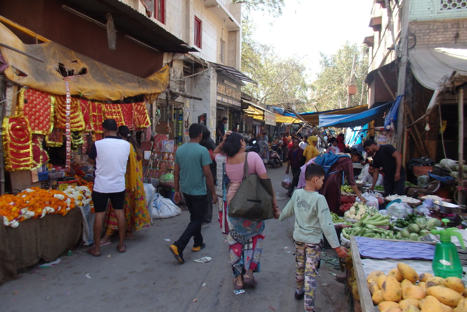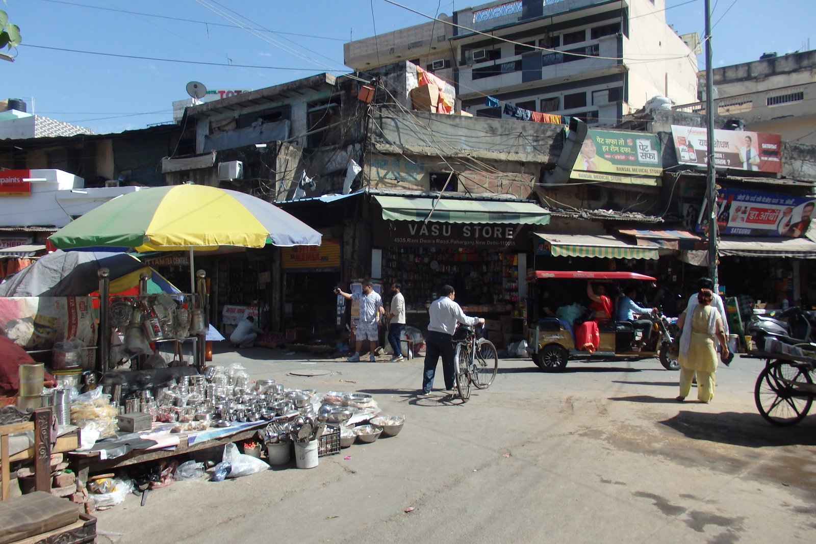 Nasz hotel wybraliśmy w sercu Głównego Bazaru मेन बाजार (czyli Main Bazar zapisany w hindi). Tak, zaraz przy stacji kolejowej znajduje się dzielnica tak określana – nie bez przyczyny. W 1911 roku Brytyjczycy zaczęli budować swoją nową stolicę, więc potrzebowali sporo pracowników – przy stacji kolejowej powstało więc osiedle robotnicze, które szybko zyskało swoją handlową charakterystykę. Z czasem robotników było mniej, ale wraz z odzyskaniem niepodległości w 1947 roku obszar ten przyjął sporą ilość migrantów, którzy jeszcze gęściej upakowali się w okolicy. W latach 70. XX wieku zaś ten obszar stał się częścią tzw. Szlaku Hipisów – oferując tani nocleg, bliskość stacji i ogólną atmosferę. Ta podróżnicza „backpakerska” cecha się utrzymała i chociaż znajdą się lokale oferujące wyższe standardy, to pełno jest jeszcze takich budżetowych opcji.