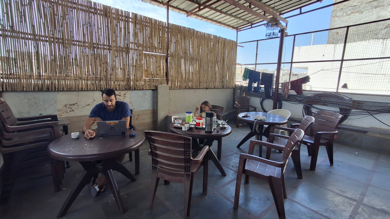 W naszym przybytku można było zamówić sobie jedzenie do pokoju, albo zjeść zamówione jedzenie w „Jadalni” na dachu. Widoków niestety nie było, czysto też już było i minęło. Być może sprzątali regularnie, zaś wszechobecny smog krzyżował ich plany po wielokroć.
