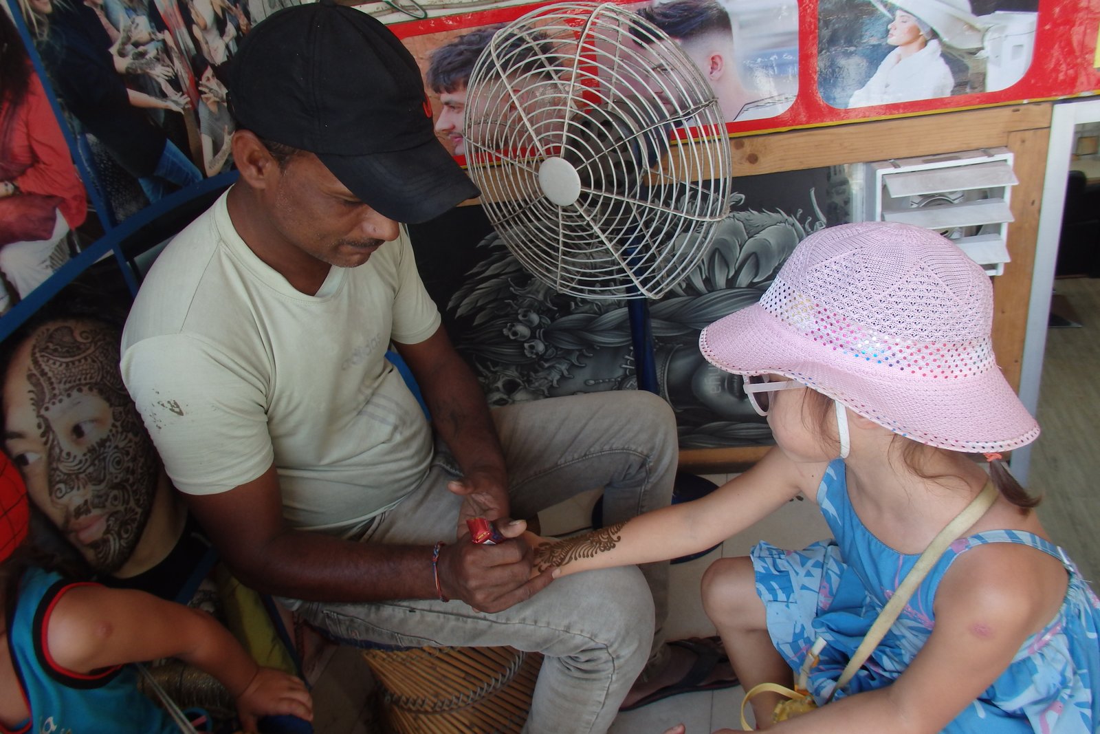 Będąc tutaj też popracowałem nad moimi umiejętnościami negocjacyjnymi, wszak jest to nieodzowny etap w procesie zakupowym. A kupić można było prawie wszystko. Jedzenie, zabawki, ubrania (z usługą krawiecką w cenie), naczynia, narzędzia, sprzęt elektroniczny. Wszystko, nawet czapki i rękawiczki przy 40 stopniowym upale (dla takich klientów jak my najwyraźniej, skoro skorzystaliśmy). Nie zliczymy ile widzieliśmy miejsc w których: można przekłuć nos (kobiety), zrobić tatuaż z henny, zjeść europejski posiłek albo pomodlić się.