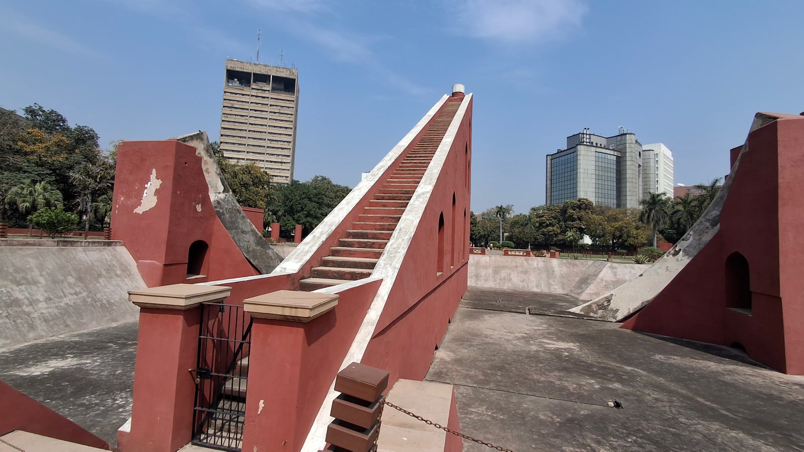 Samarat Yantra – to największy instrument w kompleksie – wysoki na 23 metry, prawie 40 m u podstawy, taki trójkąt ze schodami do nieba (skojarzenia z Led Zeppelin oraz katastrofą smoleńską przypadkowe) z dwoma rampami do skateboardu po bokach. Zasadniczo to taki wielki zegar słoneczny (największy na świecie), którym można wskazać godzinę z dokładnością do 2 sekund! Oprócz tego te schody ustawione są równolegle do osi Ziemi, więc wskazują Gwiazdę Północną, a poza tym można tego narzędzia używać do obliczania deklinacji i innych cech współrzędnych ciał niebieskich. Budowy takich schodów my popieramy…