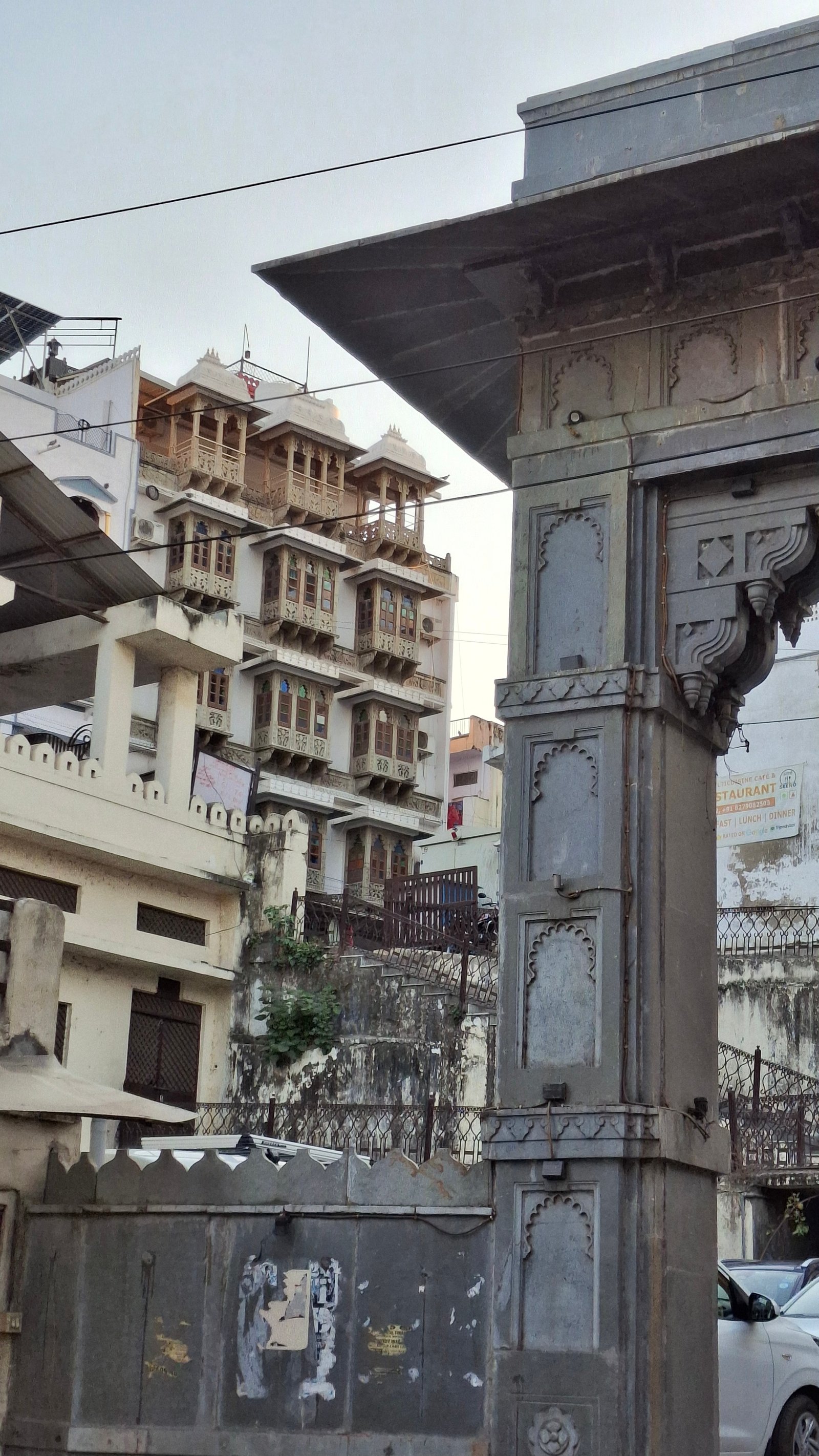 Pamiętacie władców mogolskich (nie mongolskich) z regionu Delhi wspomnianych we wcześniejszych wpisach? To właśnie owi władcy zmusili w 1559 roku władcę Królestwa Mewar Udai Singha II do przeniesienia stolicy z miasta Ćittor nad jezioro Pićhola. Niech nie będzie wątpliwości – nazwa Udaipur (उदयपुर) rzecz jasna pochodzi od imienia tegoż władcy. Zaledwie 8 lat później, znany nam władca Akbar podbił Cittor, zaś Udai kazał wybudować sześciokilometrowy mur dookoła Udaipuru. W 1576 roku Akbar dotarł do obrzeży miasta i zaczął próby jego zdobycia, ale przez pół roku mu się to nie udało! Zatem całkiem solidne te mury zbudowali! Obszar wewnątrz murów obronnych obecnie jest nazywany starym miastem, albo „miastem otoczonym murem”.