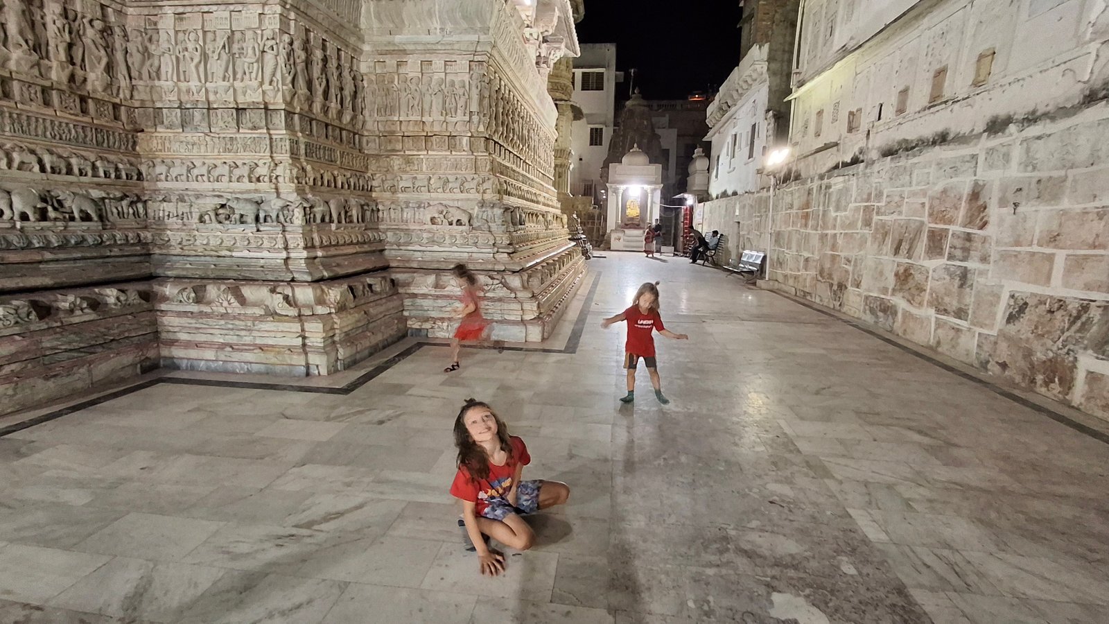 Tutaj mamy małą zagwoztkę, ponieważ ja odwiedziłem sąsiednią świątynię – niewiele ustępującej misterności wykonania Jagdish Temple, ale nie jesteśmy w stanie znaleźć jej nazwy w Internecie. Znajduje się tutaj: https://maps.app.goo.gl/GqTpn58PoCeXEhoG8 i nie jest nawet oznaczona na mapach Google, zaś na mapy.cz nazwana jest jako Jagat Shiromani Temple, ale Internet twierdzi, że nie ma takiej świątyni w Udaipurze, zaś jest w pobliskim Amerze.