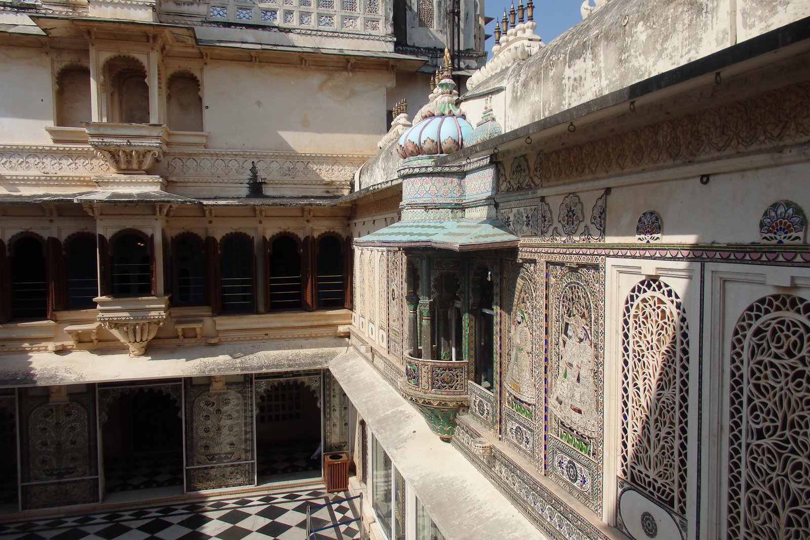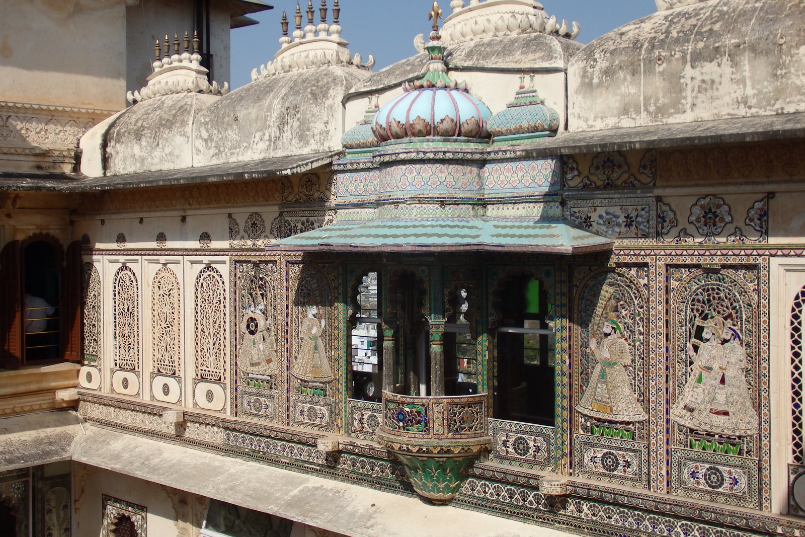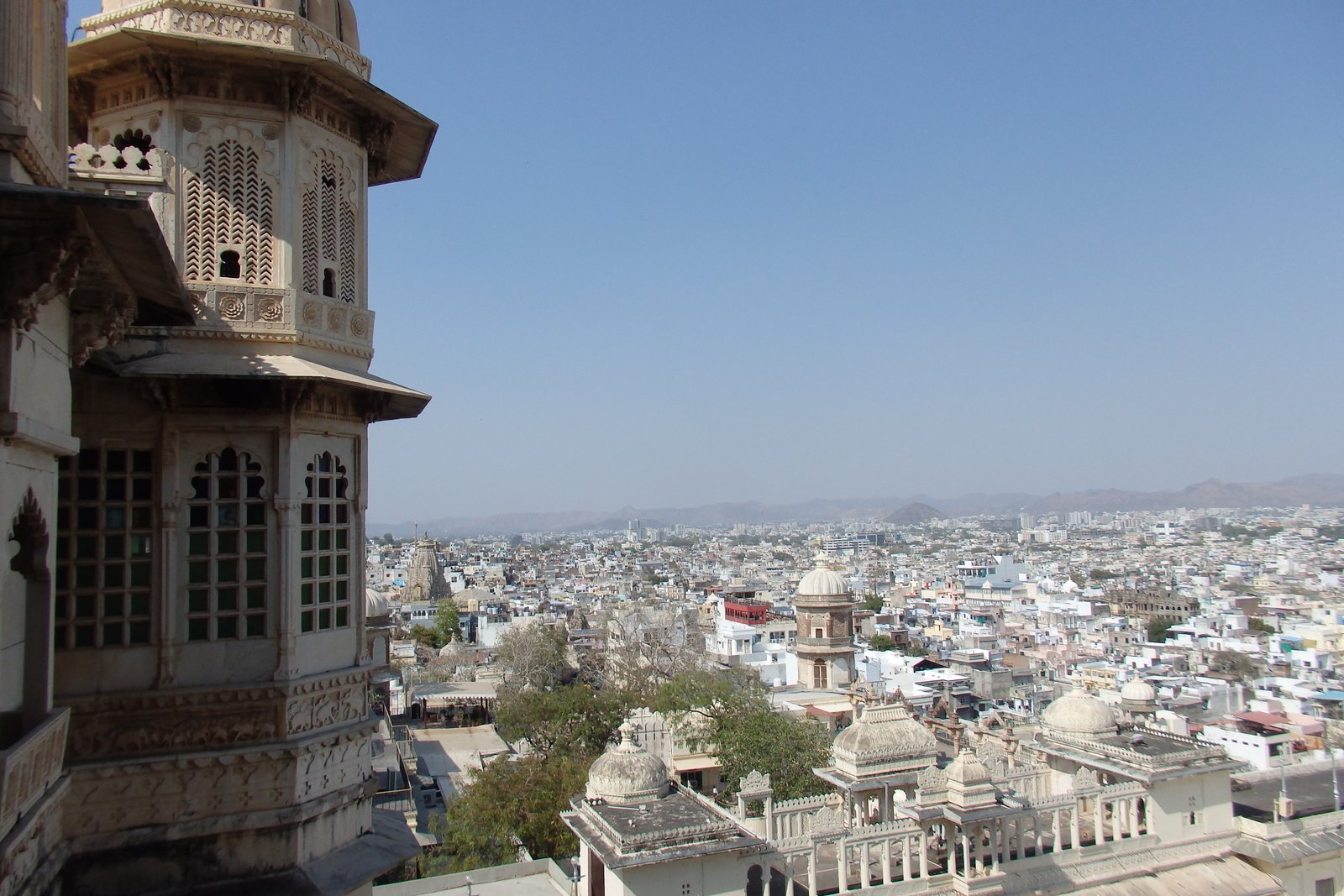 Najbardziej charakterystycznym, i zarówno jednym z powodów do nadania miastu przydomku „biały”, jest Pałac Miejski. Tak – nazwa jest zawodem (potencjał jest ogromy – „pałac tysiąca witraży”, „pałac łączący niebo i ziemię”, „pałac pod wąsem wschodzącego słońca”), ale sam kompleks nadrabia urodą. Zbudowany i rozbudowywany na przestrzeni 400 lat, góruje nad miastem, zaprasza do zwiedzania ogromnej liczby komnat, dziedzińców i korytarzy, każdy wypełniony wszelakimi artefaktami i dziełami sztuki z przestrzeni lat. Możliwość oglądania takiego cuda każdego poranku przy śniadaniu i oglądanie go przy zachodzącym słońcu i później świetle księżyca – wynagradzało to każdorazową konieczność wspinaczki do hostelu.