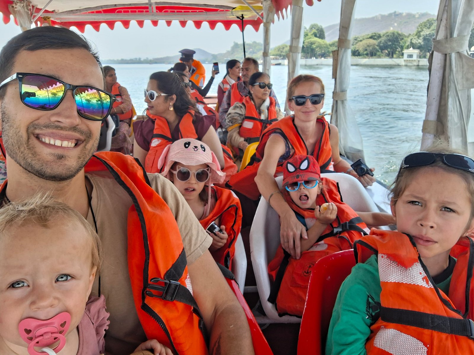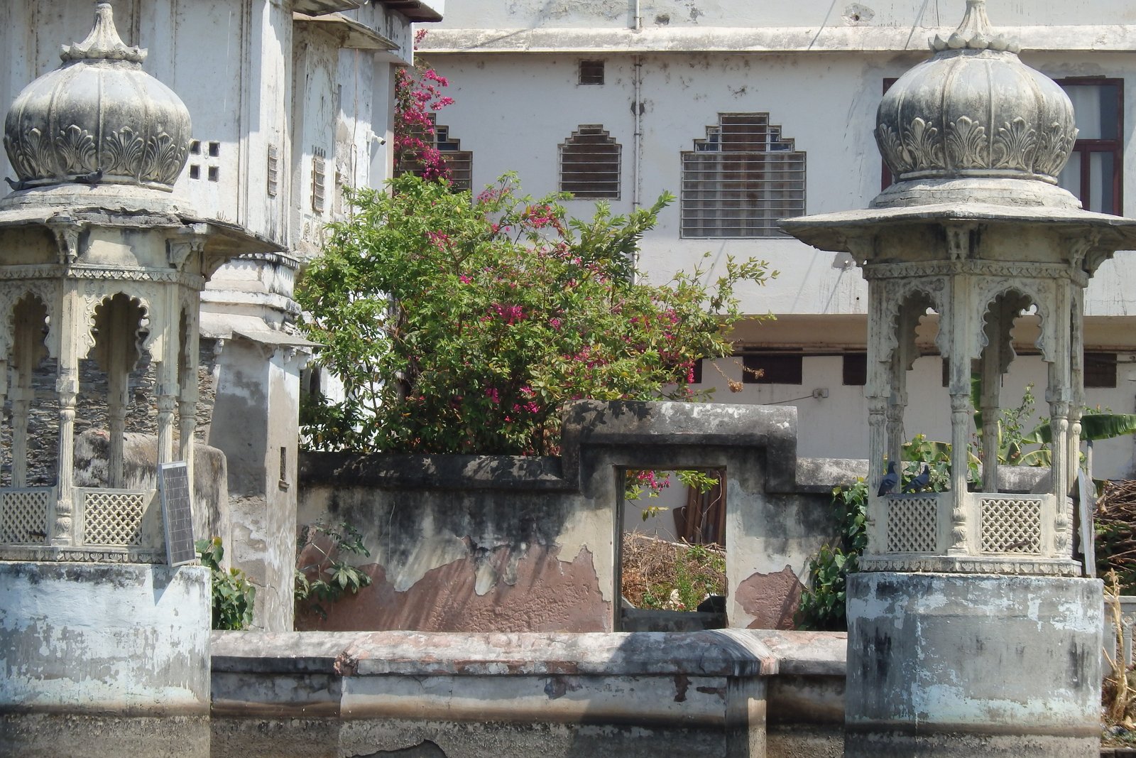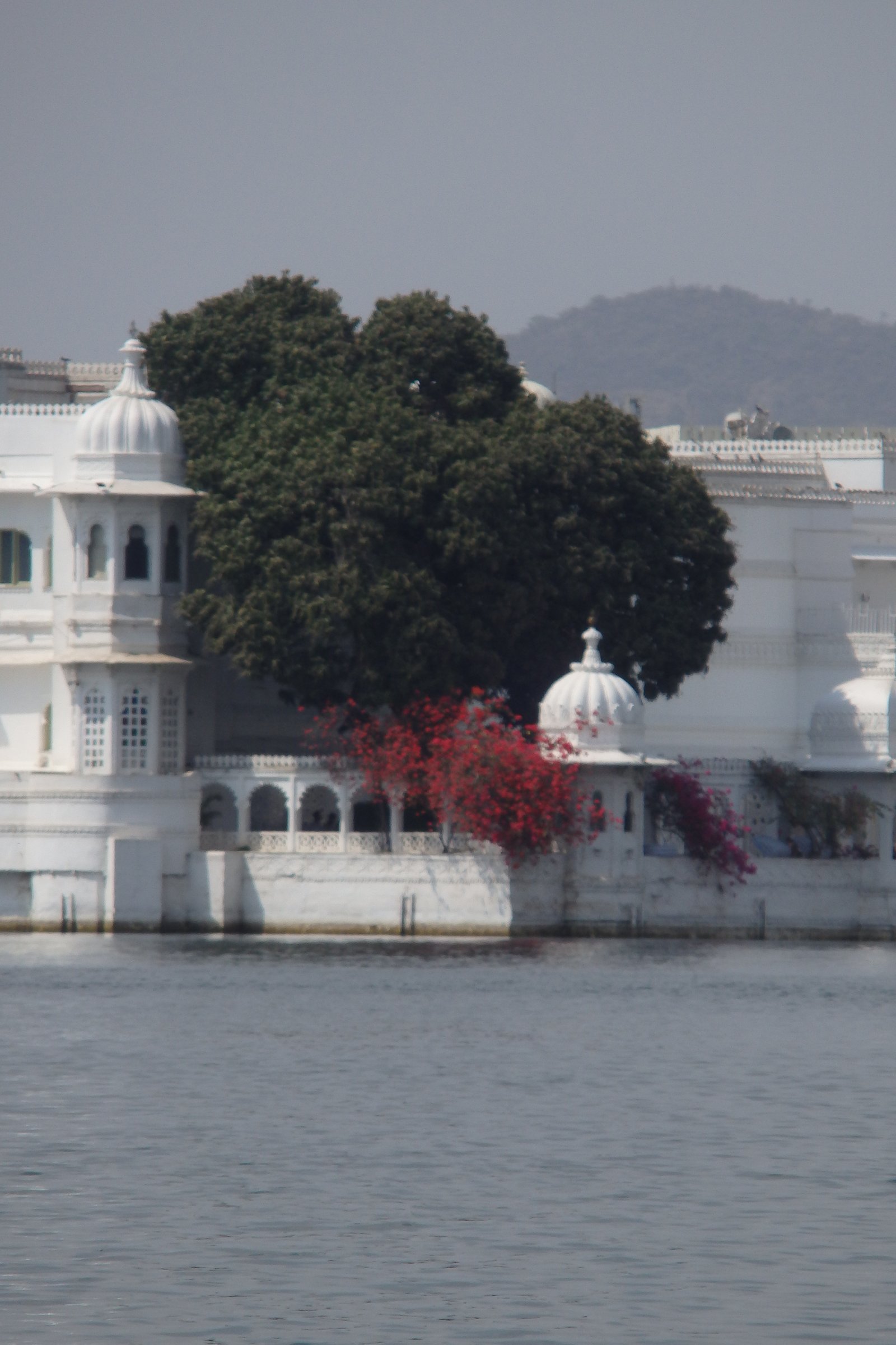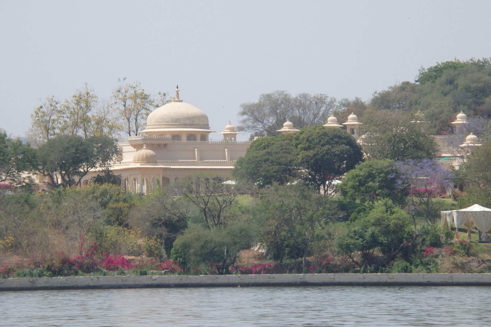 Ale jezioru nie odpuściliśmy i wybraliśmy się na rejs na jedną z wysp. Wprawdzie trafiliśmy na inną, aniżeli Niebieska planowała, ale i tak było ładnie. Jeśli ktoś poszukuje bardziej zjawiskowych hoteli, to właśnie jedna z tych wysp – Jag Niwas – jest jednocześnie hotelem i jednym z najbardziej rozpoznawalnych symboli Udaipuru. My zaś dopłynęliśmy na Jag Mandir – również pałac, ale z przestrzenią restauracyjną, mini-ogrodem i mini-wystawą.