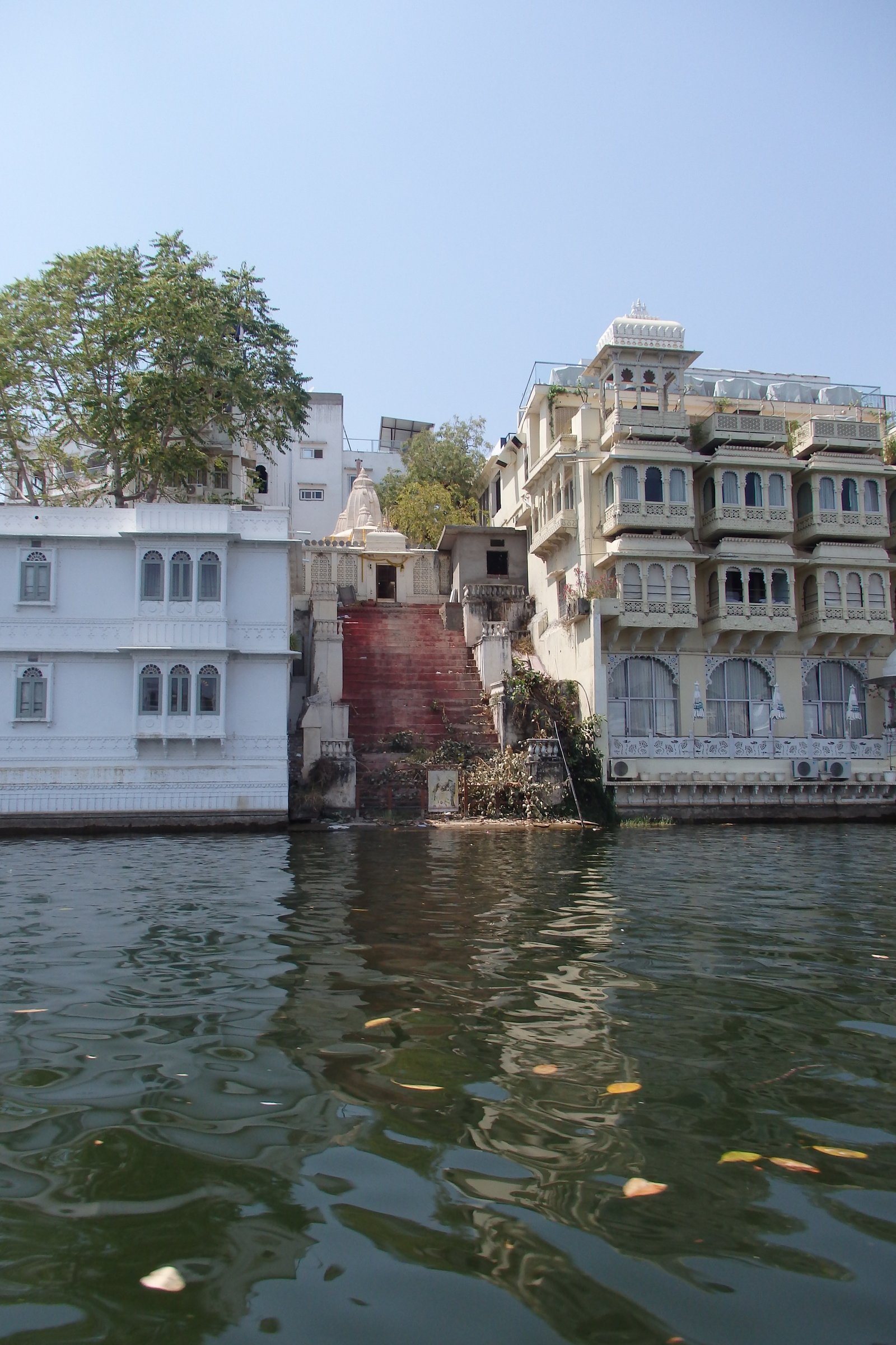 Podążając wzdłuż wybrzeża można napotkać całkiem sporo ghatów- przy samej północnej części jeziora Pichola google maps wskazuję przynajmniej 5, a są to tylko te bardziej popularne. Z jakiegoś powodu Udaipur nie oferuje jeszcze wynajmowania indywidualnych łódek, albo nawet rowerków wodnych – wydaje się to najlepszym miejscem w całym kraju (a przynajmniej tej części, którą przyszło nam odwiedzić). Ktoś ma ochotę na rozkręcenie biznesu?