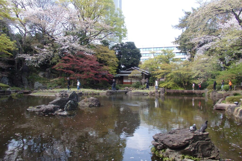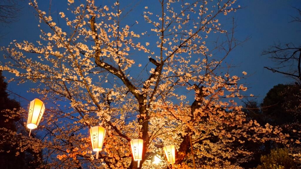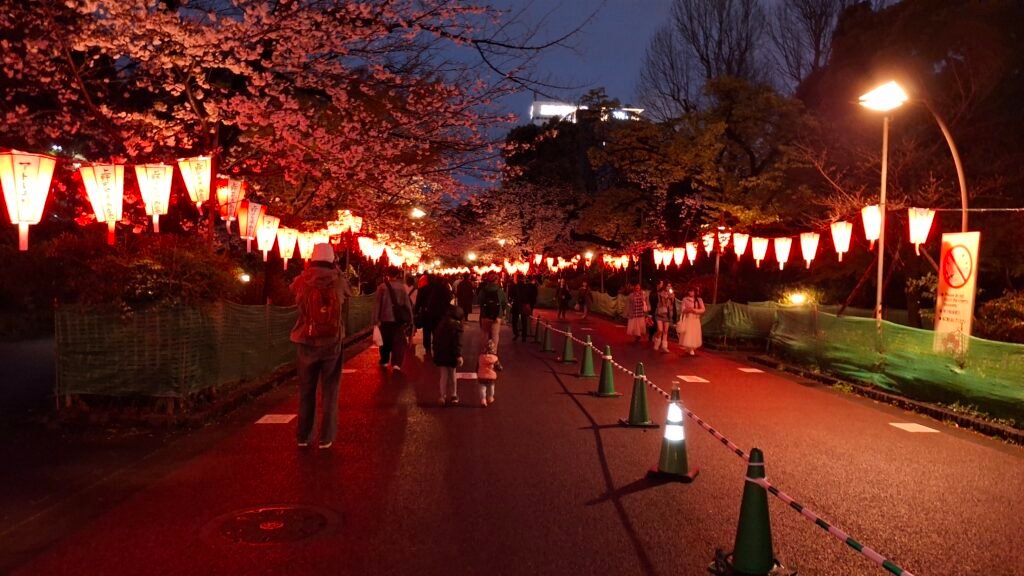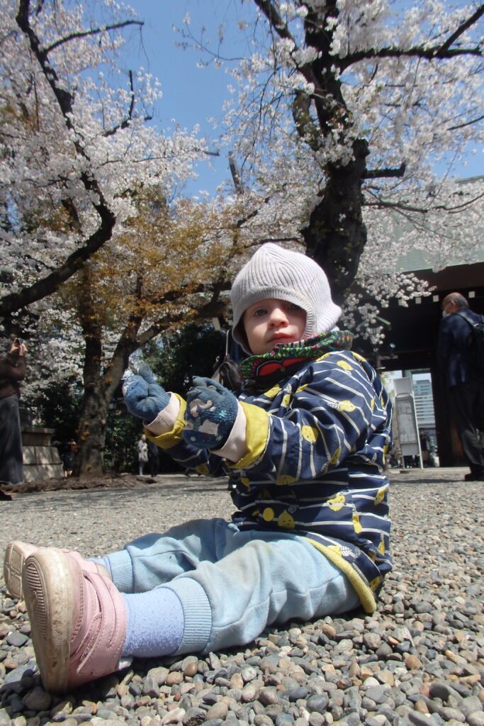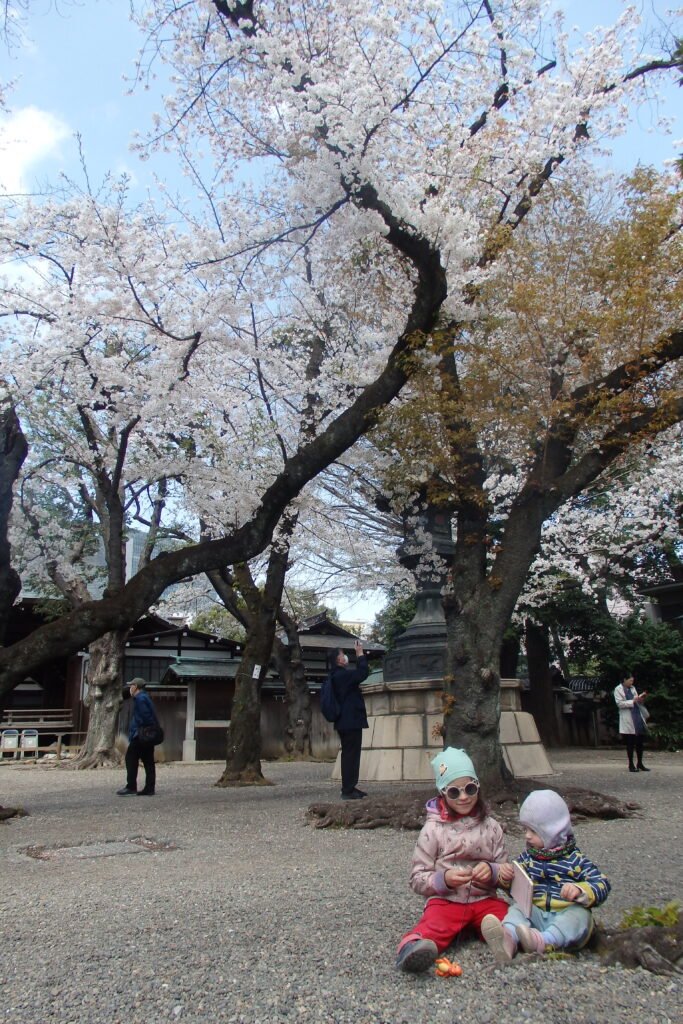 Ale my o tym nie wiedzieliśmy – weszliśmy po prostu do jakiegoś ładnego miejsca (darmowe) i się nim zachwycaliśmy. A było czym – fakt, że poza chodnikami ziemia zasypana była drobnym jasnym żwirem, z którego wyrastały ciemne drzewa obwieszone białym kwieciem dał wrażenie pewnej czystości i niebiańskości, a masywne, drewniane konstrukcje dopełniały mistycyzmu otoczenia. Definitywnie jeden z tych obrazów, które zostaną w pamięci. Naszym zdaniem jest to najpiękniejsze miejsce do podziwiania Sakury w Tokyo.