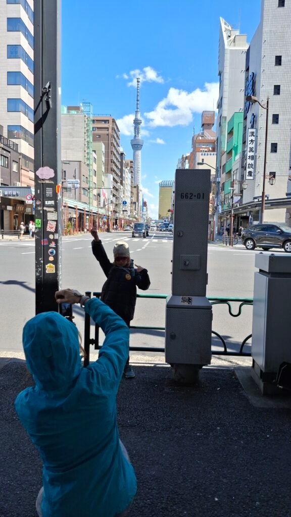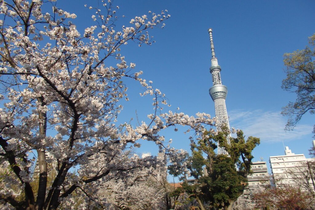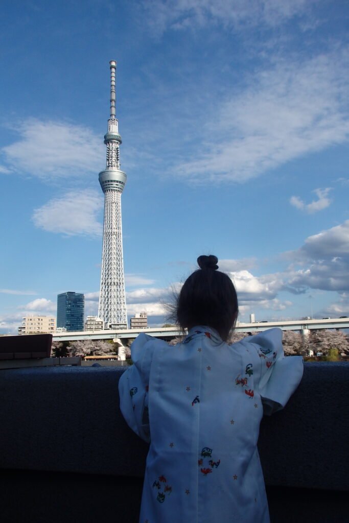 A na chwilę zejdźmy z estetycznych tematów i pomówmy o wcale-nieukrywającą-się-a-totalnie-górującą-nad-wszystkimi wieżą. Nazwa wybrana w krajowym konkursie nazwa Tokyo Skytree 東京スカイツリー, Tōkyō Sukaitsurī) nieźle oddaje charakter konstrukcji – drzewopodobne coś sięgające nieba. Zbudowana w 2012 roku (29 lutego), ma 634 metry wysokości, co czyniło ją w chwili otwarcia trzecią najwyższą budowlą na świecie. Co ciekawe, wysokość też nie jest przypadkowa – jeśli rozbić ją na cyfry, to dostaniemy 6 (mu), 3 (sa), 4 (shi) co odpowiada „Musashi”, która to była historyczną prowincją obejmującej m.in.. okręg metropolitalny Tokio, w której ta wieża stoi.