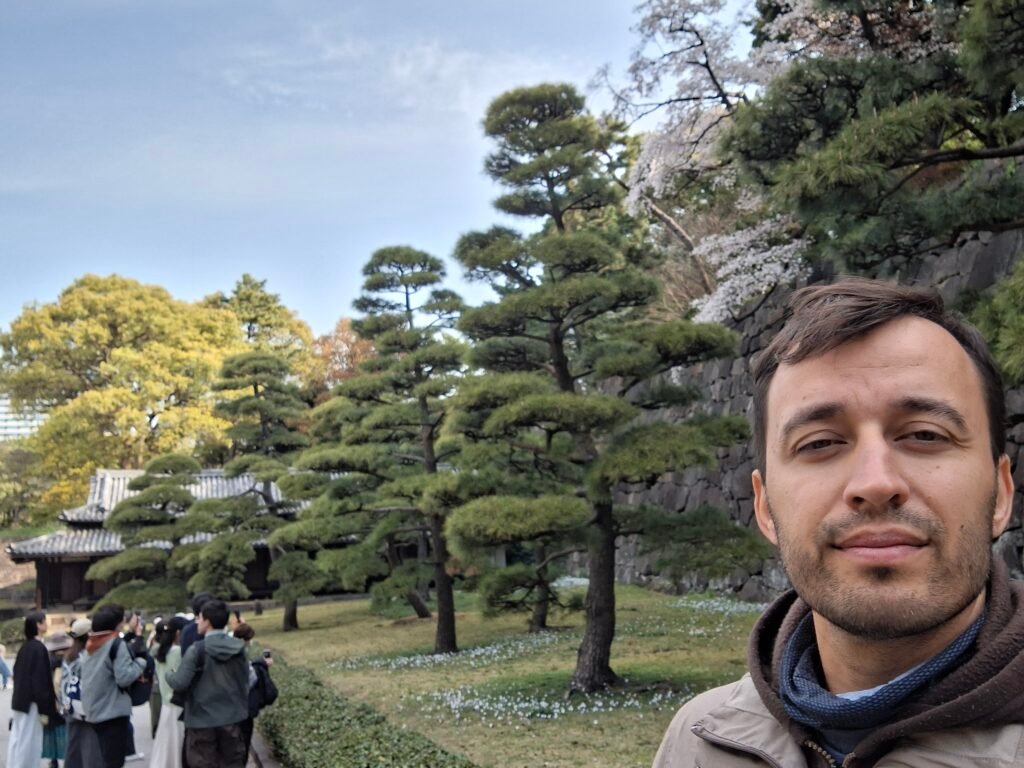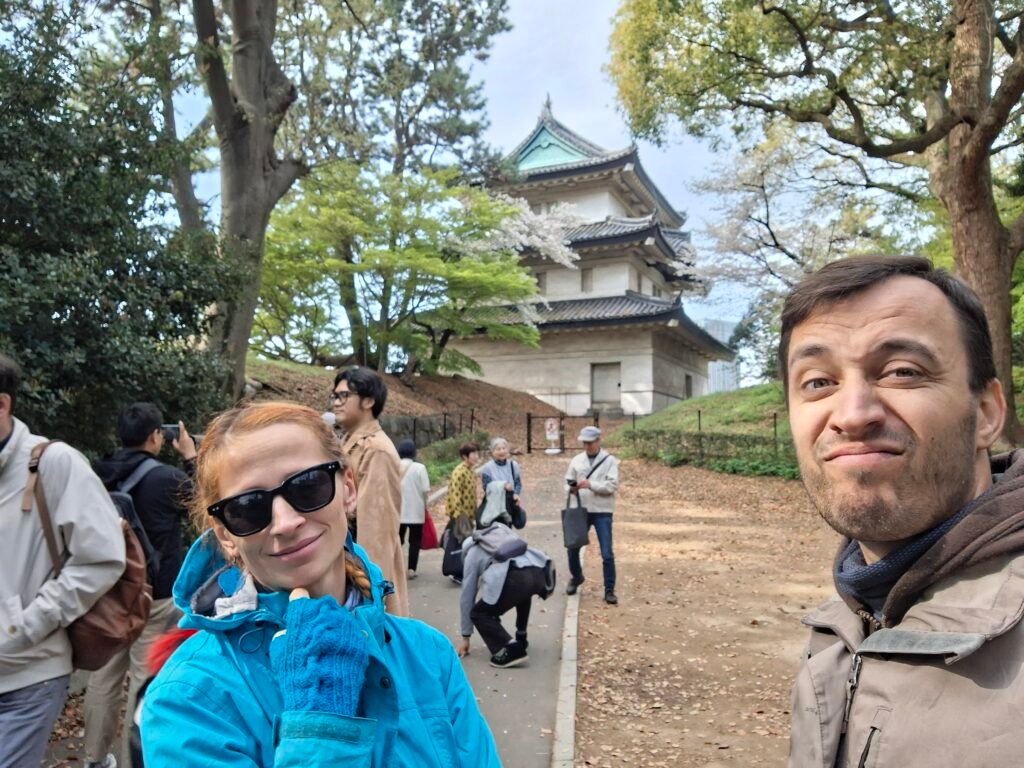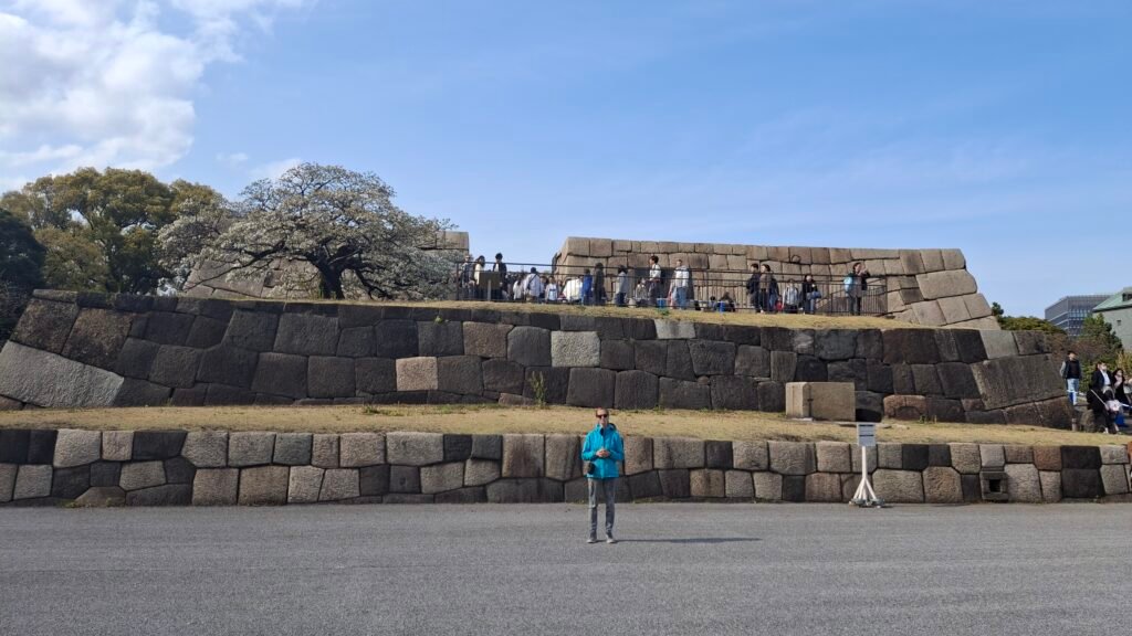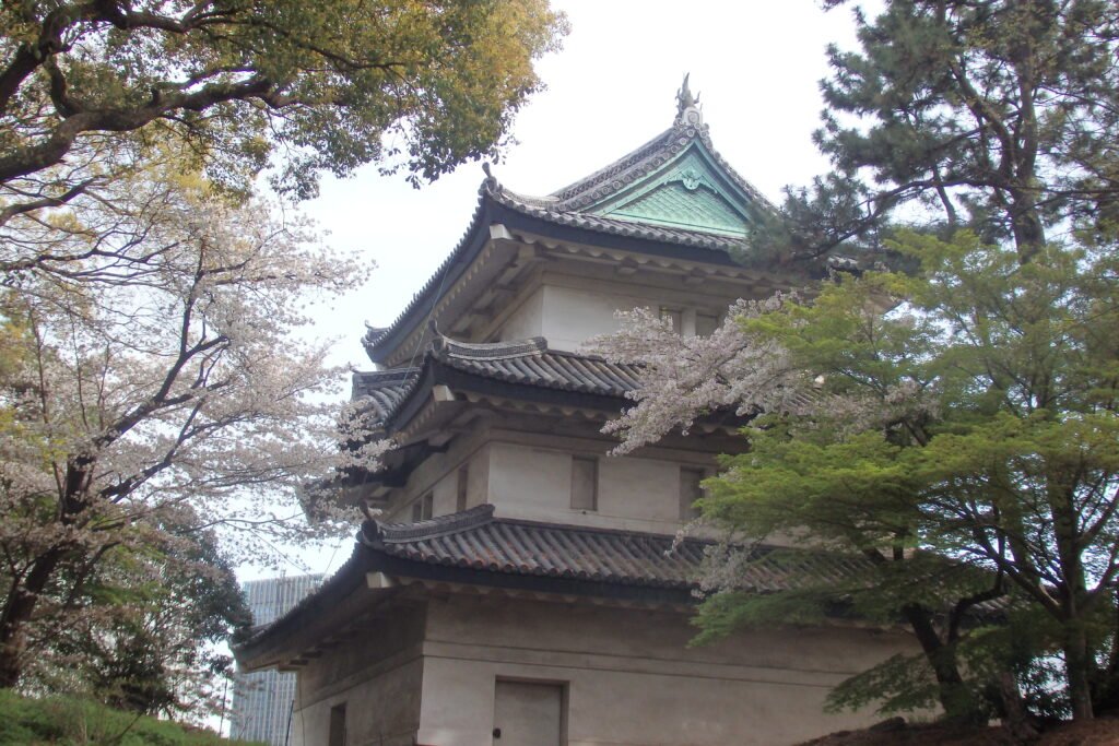 Podziwianie Sakury któregoś razu zaprowadziły nas na teren ruin pałacu Edo. Zbudowany w 1457 roku stanowił siedzibę władców przez 260 lat, czyli prawie cały okres określany właśnie Edo. Główna wieża czyli Tenshu (天守, 天主, 殿主, 殿守, albo tenshukaku; 天守閣) została zniszczona w wielkim pożarze z 1657 roku, czyli 200 lat po wybudowaniu i nigdy nie została odbudowana. Pozostałe budowle powoli niszczały w skutek wojen i obecnie teren jest głównie zieloną przestrzenią z ruinami. Najwięcej elementów zachowało się z wspomnianej głównej wieży. Po rozmiarach ruin możemy potwierdzić, że budowla musiała być bardzo duża – kompleks stanowił jeden z największych zamków na świecie w swojej epoce.