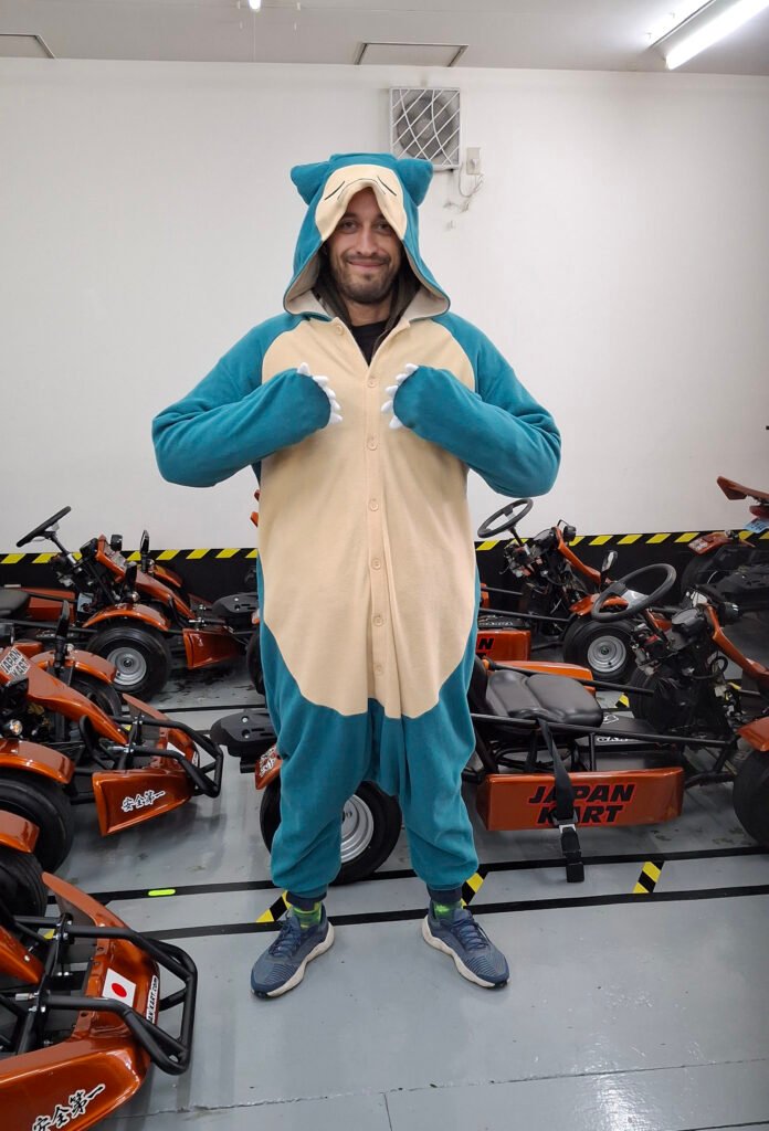 Dotarłem na miejsce jako pierwsza z zapisanych osób i zostałem poczęstowany japońskimi cukierkami. Rzecz jasna nie mogłem sobie odmówić spróbowania każdego smaku – nie posiadam hamulców jeśli chodzi o słodycze, to u nas rodzinne. Zaraz potem dostałem do wyboru całą masę przebrań znanych z popkultury. Oczy mi się zaświeciły na możliwość przywdziana kostiumu i przywołały mi na myśl niegdyś często organizowane imprezy tematyczne w domu rodzinnym – które zawsze cieszyły się dużym zainteresowaniem i wyciągała z ludzi ukryte pokłady kreatywności. Zdecydowałem się na Snorlaxa – pokemona, którego supermocą było bycie dużym i spanie. Przy takiej ilości dzieci zasnąć mogę wszędzie, a jeśli porówna się mnie do jdowolnych azjatów to można mnie także określić przymiotnikiem „duży” (chociaż w innej osi).