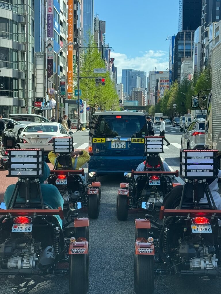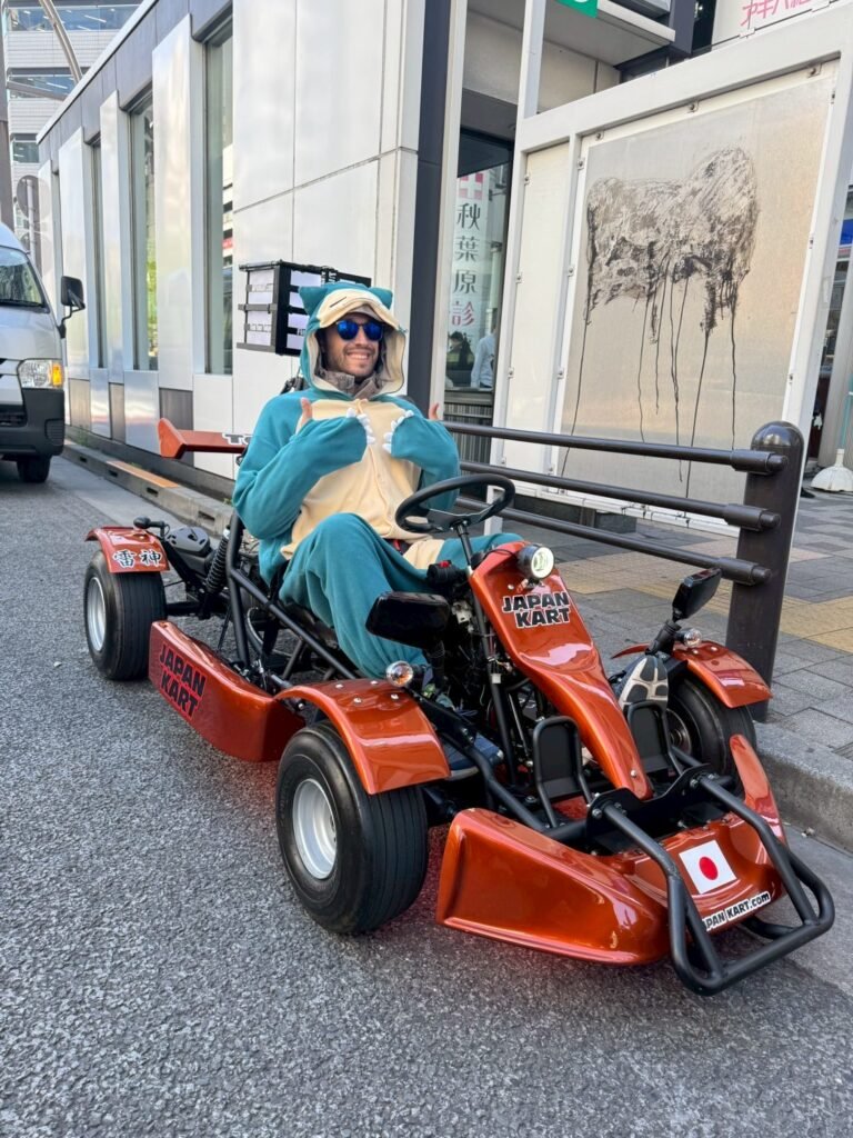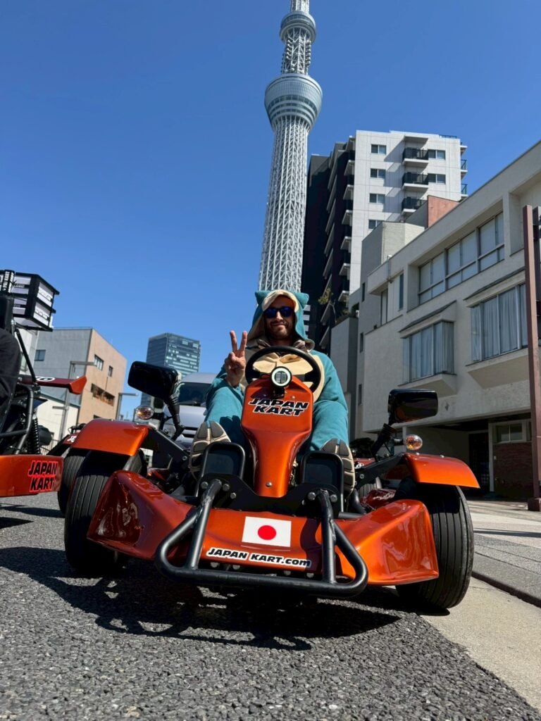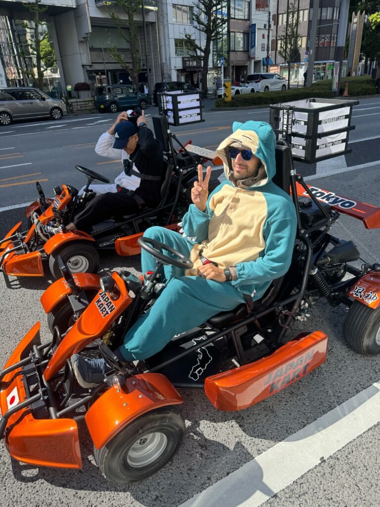 W ramach doświadczania czegoś nowego, wybrałem się do firmy organizującej przejazdy gokartami po Tokio. Bardzo ciekawa, a także niepokojąca perspektywa jeżdżenia w aucie-zabawce po centrum najbardziej zatłoczonego miasta w Japonii. Szczęśliwie nie są to Indie, czy Wietnam – kierowcy trzymają się zasad ruchu drogowego, jeżdżą w obrębie swoich pasów, zaś ilość skuterów na drogach jest w akceptowalna.