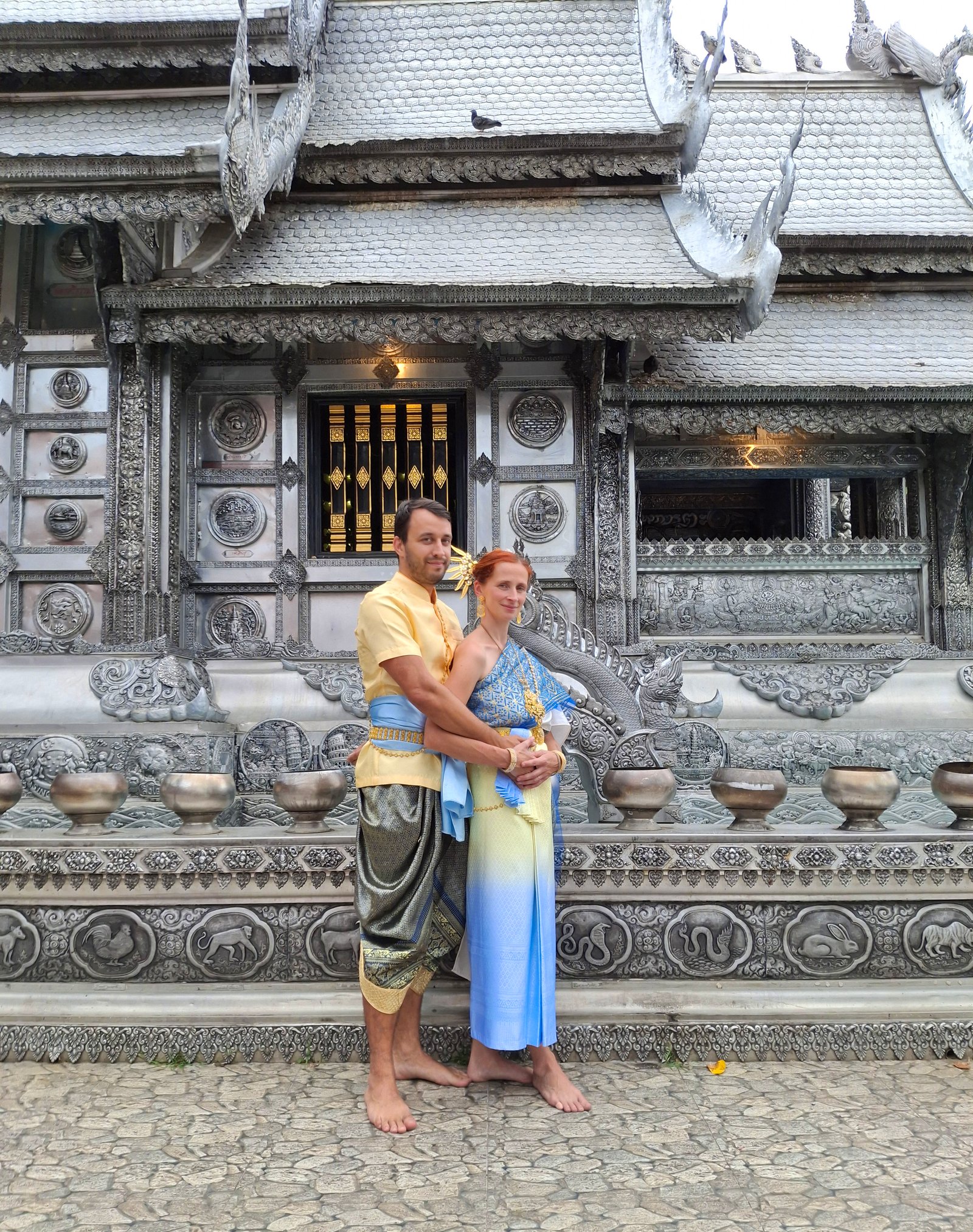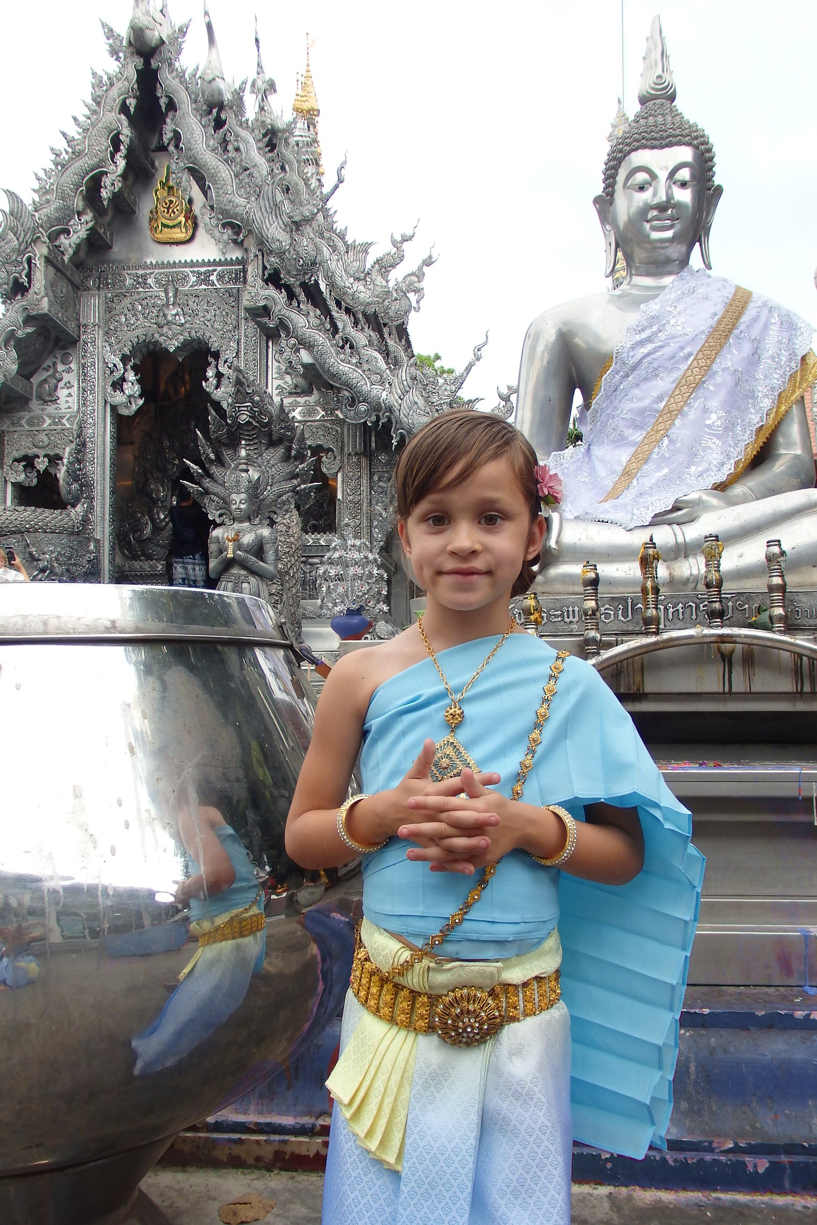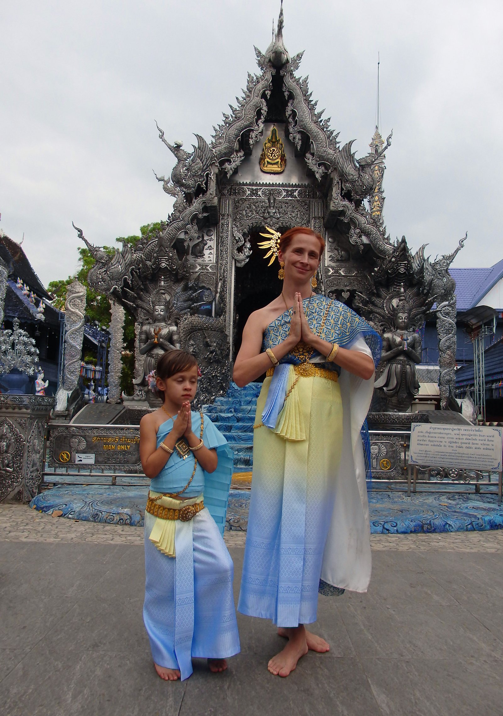 Warto jeszcze przypomnieć o drobnej niespójności władz sakralnych. Otóż, aby móc wejść ogólnie do świątyni trzeba być odpowiednio ubranym, kobiety muszą mieć m.in. zakryte ramiona, jeśli natomiast odwiedza się sakralny przybytek w tajskim stroju narodowym to ta zasada nie obowiązuje i można hasać z nagim lewym barkiem.