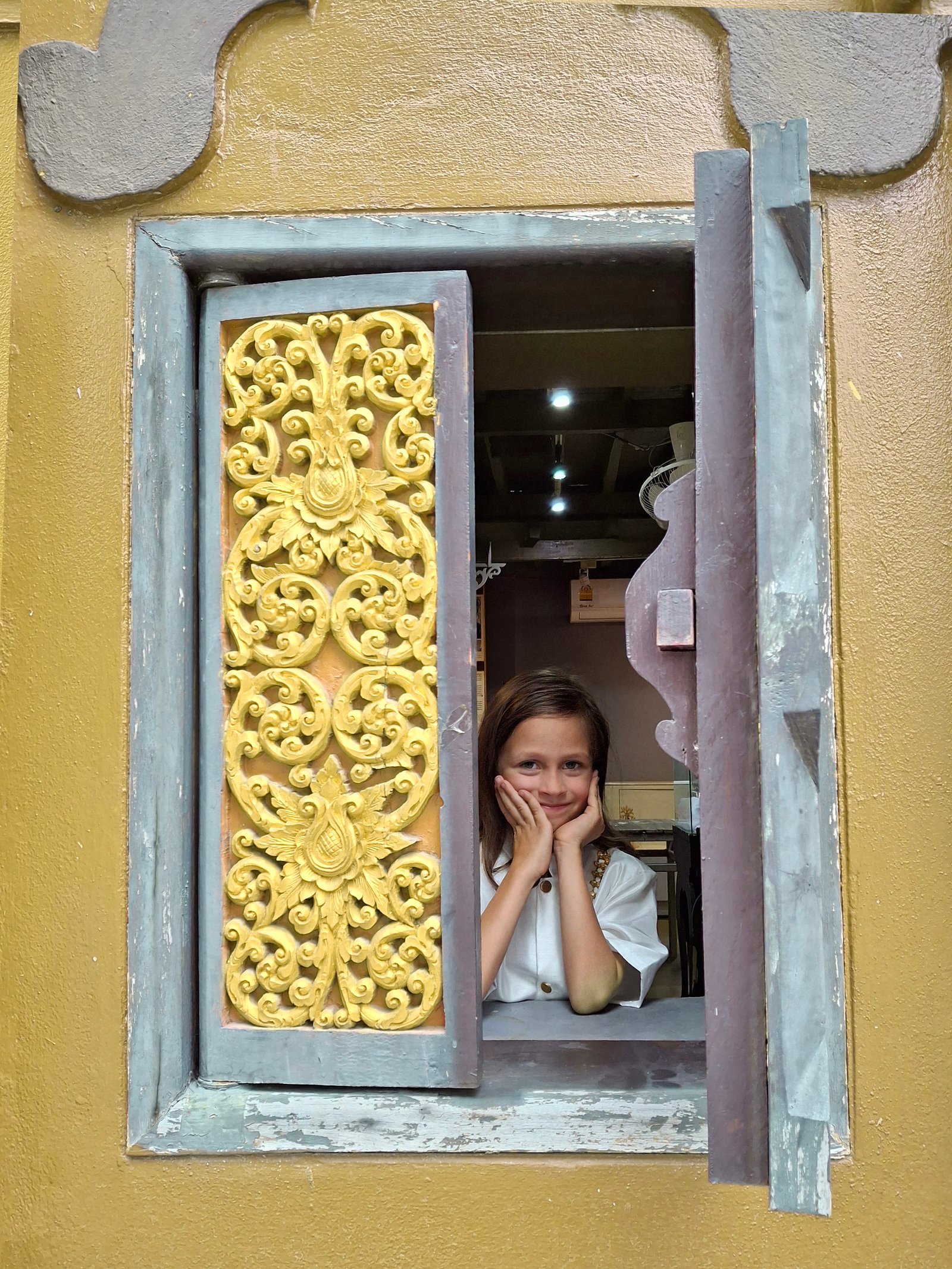 Wejście do świątyni jest darmowe, aczkolwiek sugestia jest, kupić cegiełkę w postaci zawieszki. No to poprosiliśmy o bilety. Dzieci mają za darmo. No ale jak to, dostaliśmy dwie zawieszki, więc będą niesnaski – zakupiliśmy zatem trzeci bilet ekstra – jest to pierwsze miejsce, gdzie dobrowolnie zapłaciliśmy za bilet, którego kupić nie musieliśmy. Ot takie dylematy rodzin trój- i więcej dzietnych.