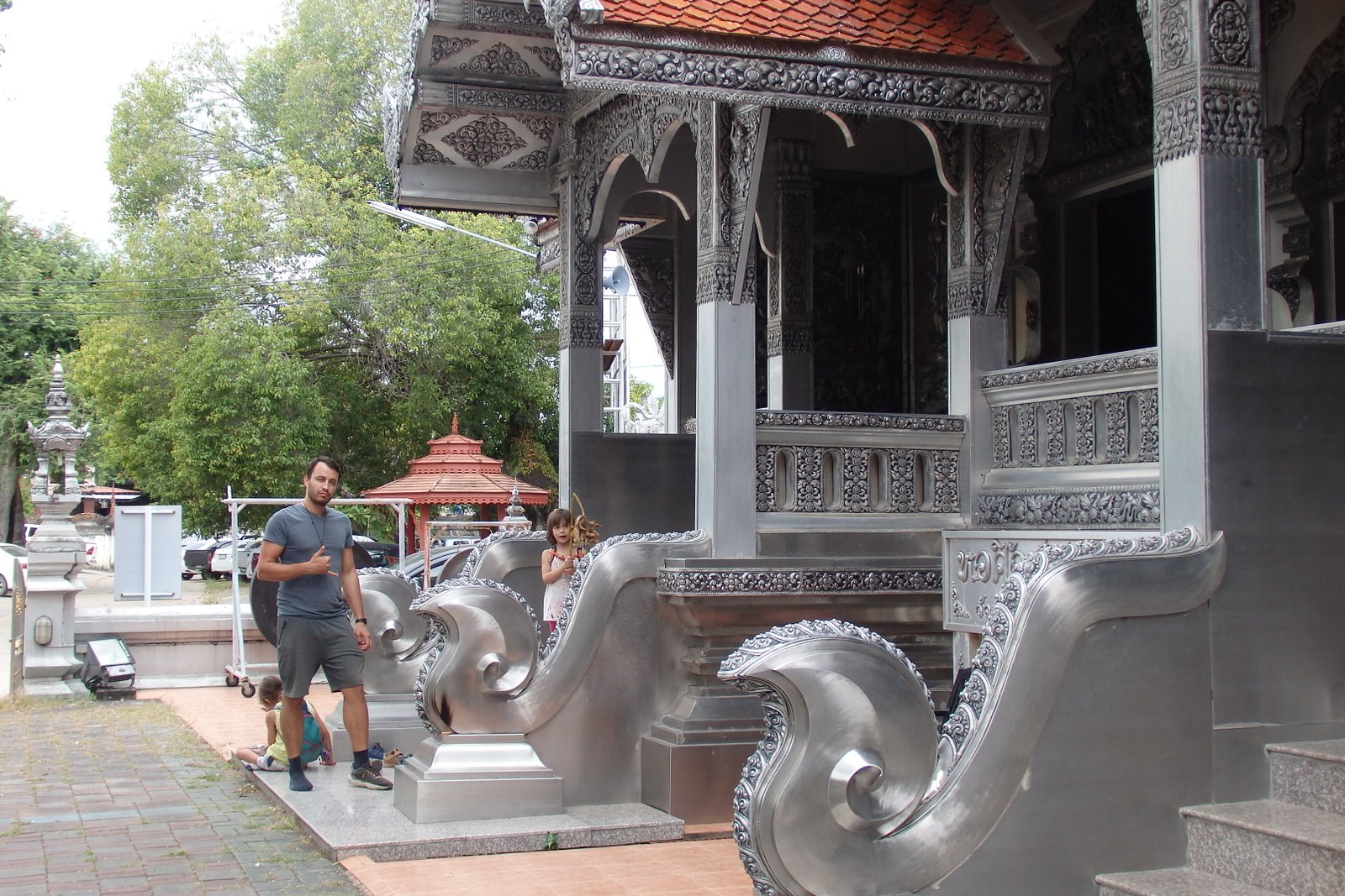 Przy okazji poszukiwań kesza znaleźliśmy srebrną świątynię i to przed odwiedzeniem tej docelowej. Szybko się zorientowaliśmy, że nie jesteśmy u celu – wszak było niemalże pusto i okolica była lekko zaniedbana. A okazało się, że jest tam coś na wzór galerii sztuki – wystawione były kolejne płaskorzeźby w metalu ze scenkami rodzajowymi i religijnymi. Ile srebrnych świątyń może być w małym mieście?